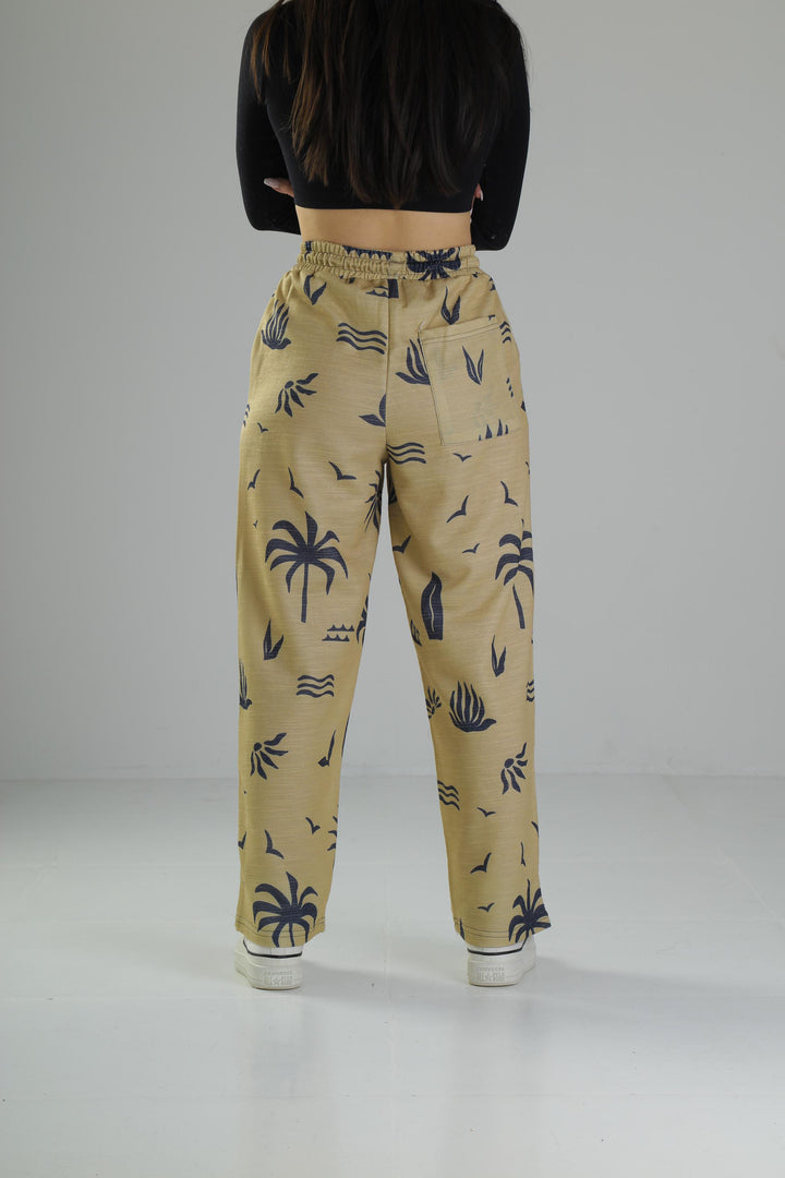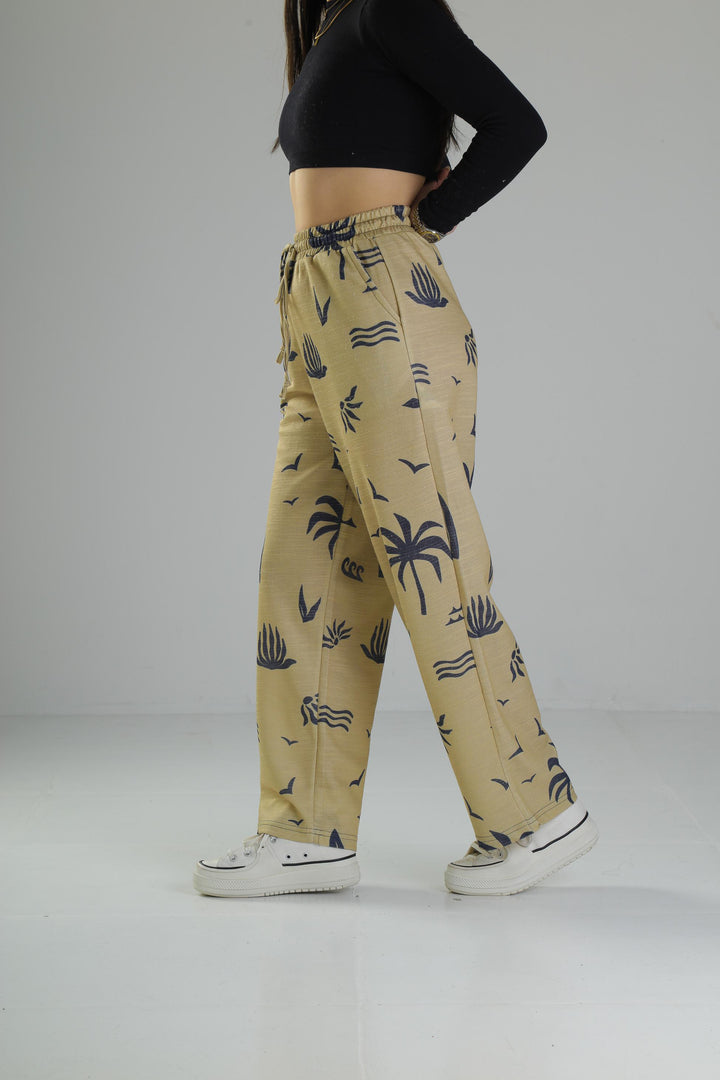 Ağaç Desenli Sarı Baggy Pantolon COC2417