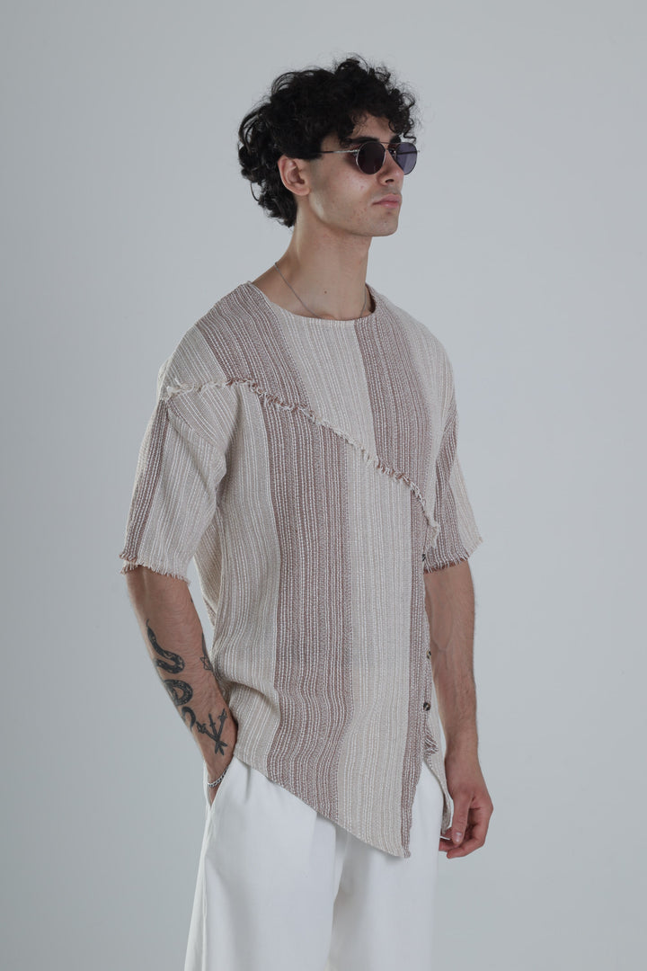 Asimetrik Tasarım Kahve T-Shirt COC1383
