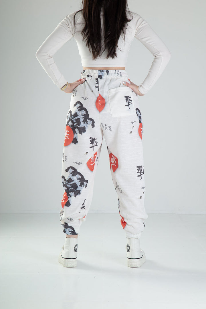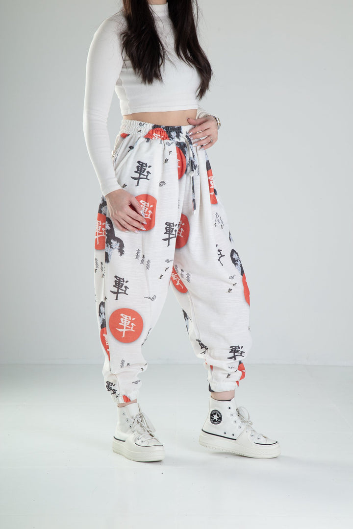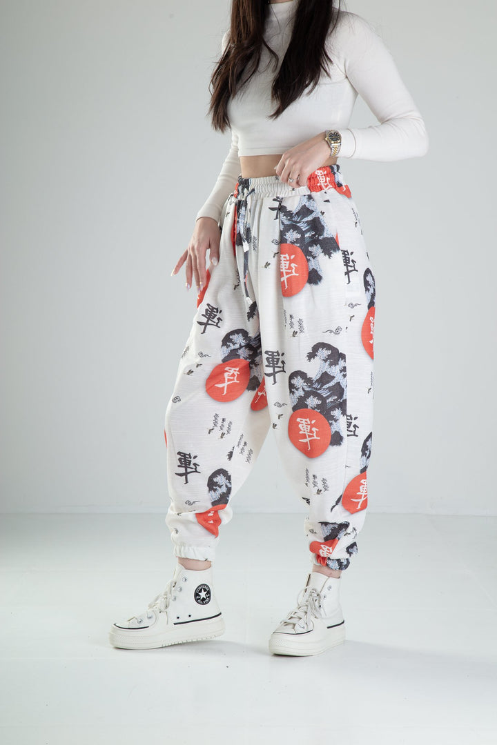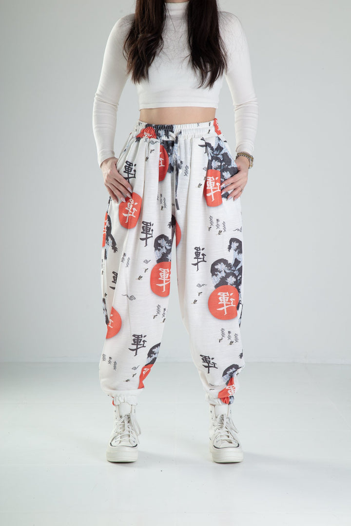 Beyaz Chinese Desenli Yarım Şalvar COC2430