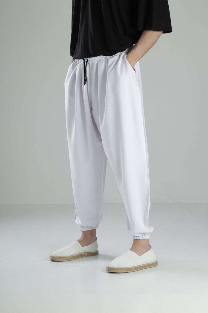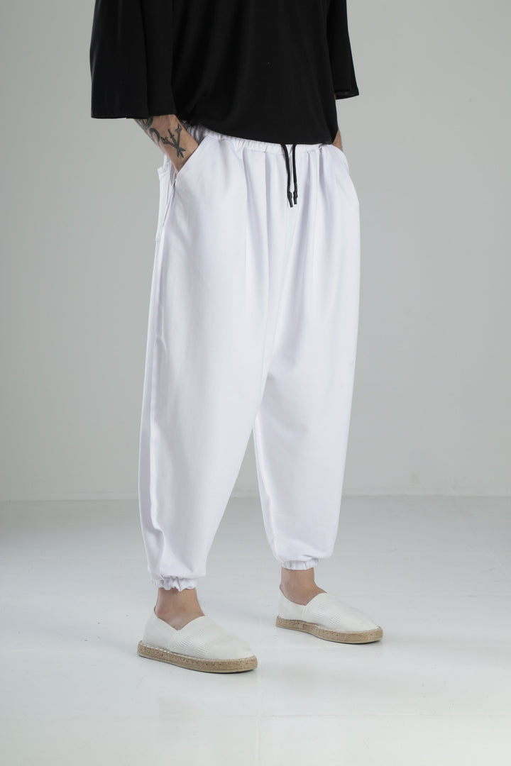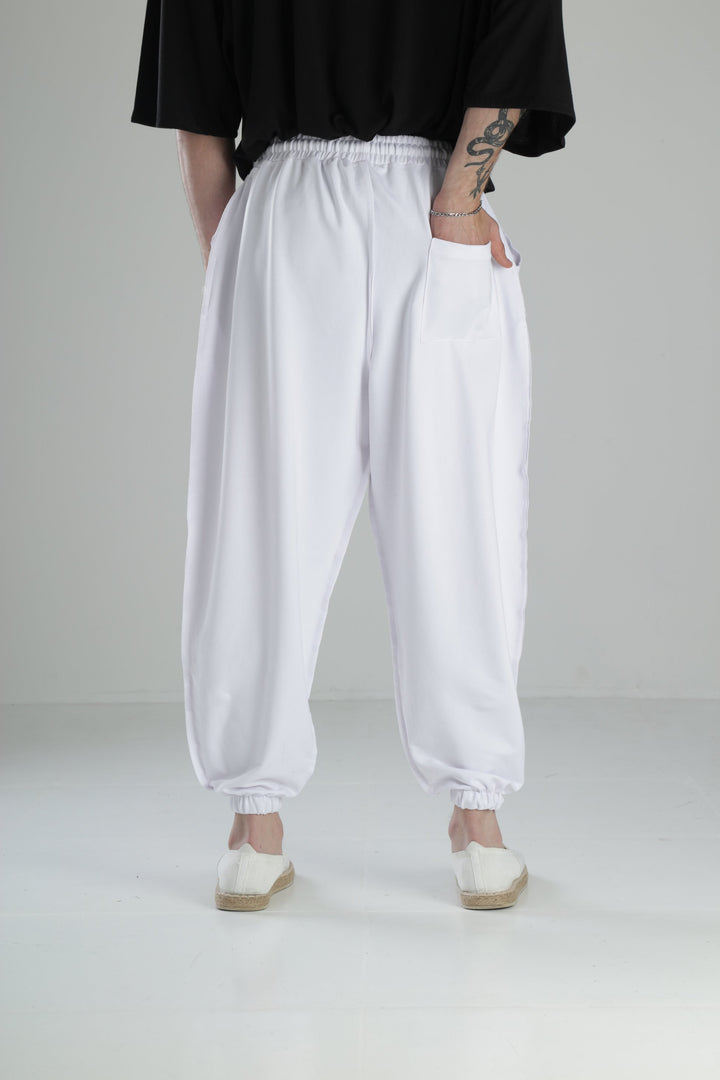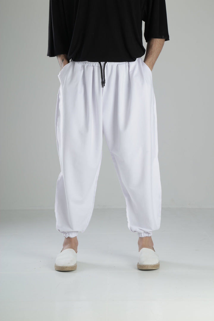 Beyaz Dikiş Detaylı Pileli Yarım Şalvar