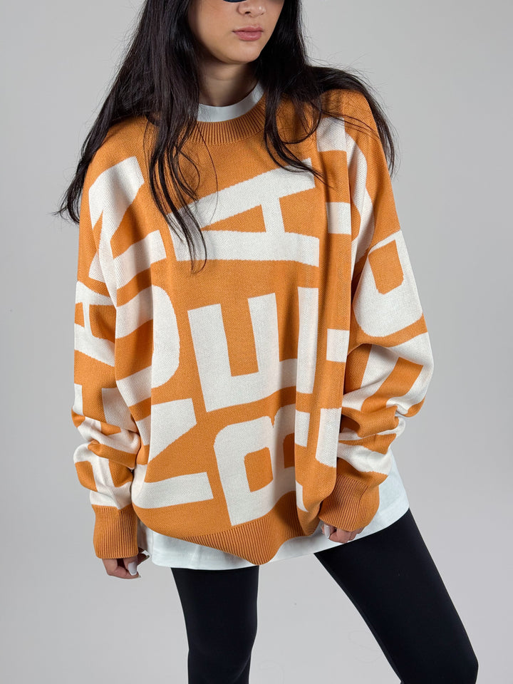 Bold Print Oversize Kadın Turuncu Sweat COC1180