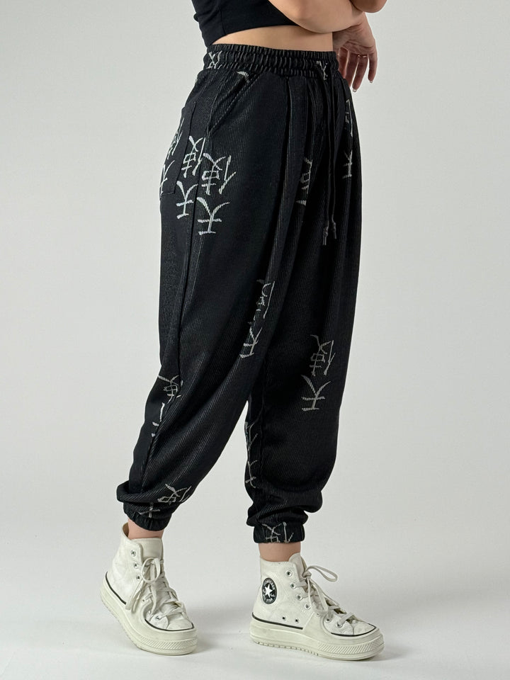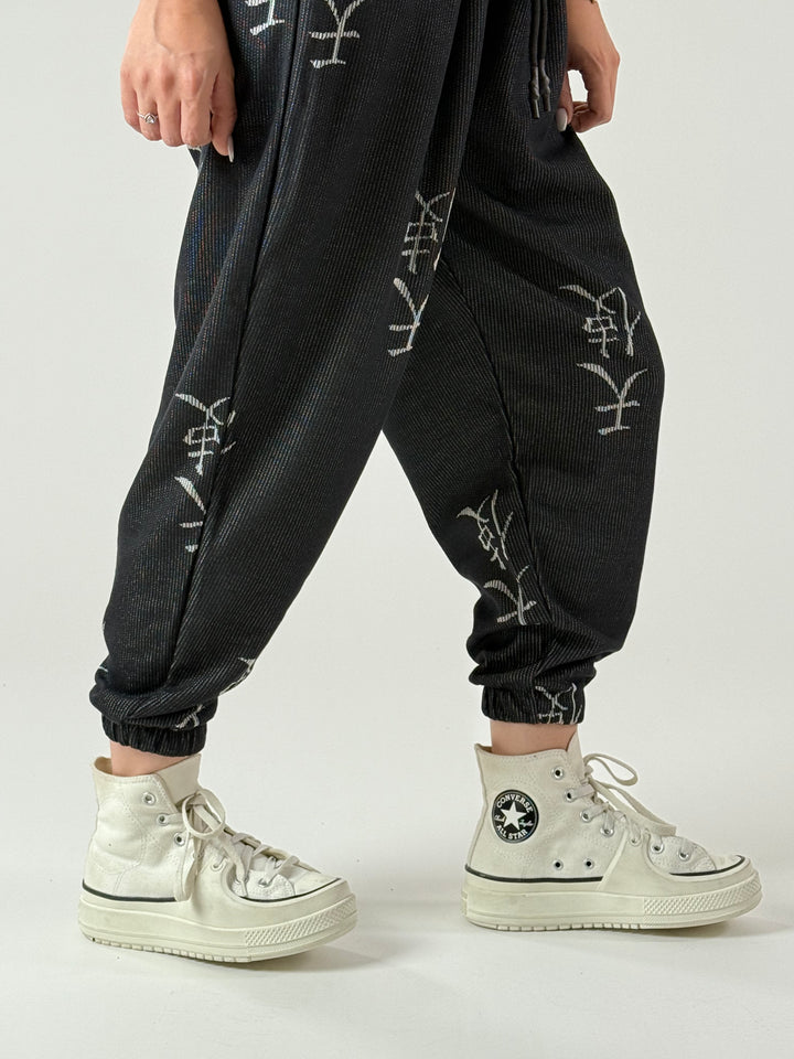 Chinese Desenli Antrasit Kadın Jogger Pantolon