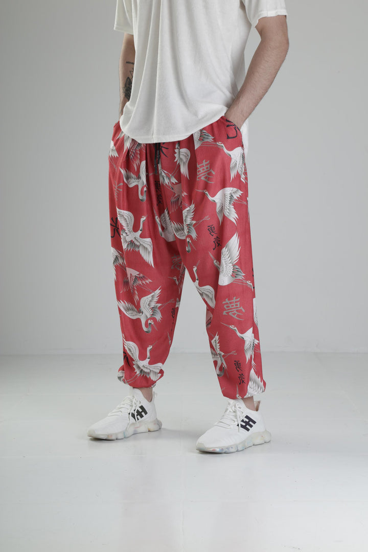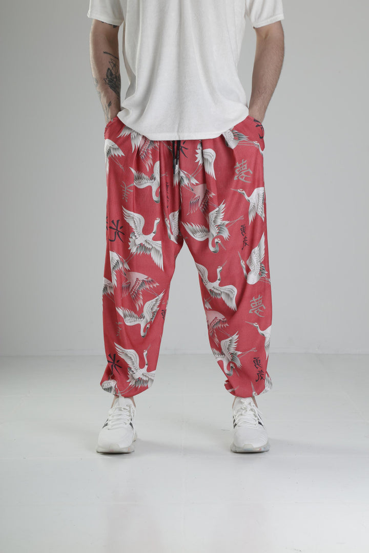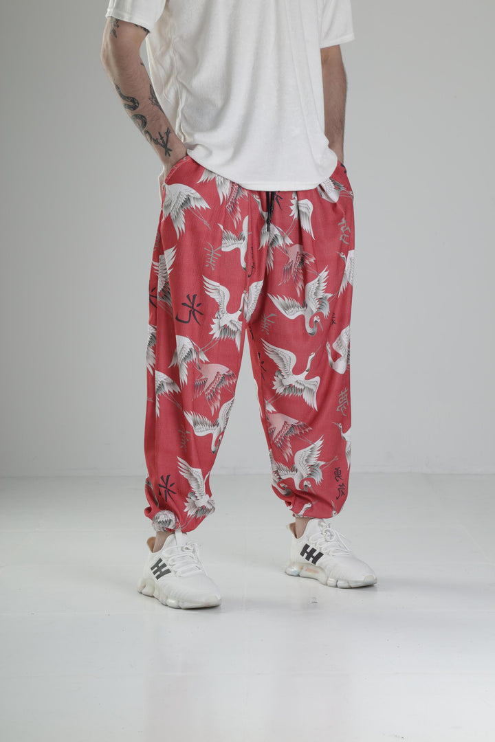 Chinese Kuş Desenli Pileli Yarım Şalvar