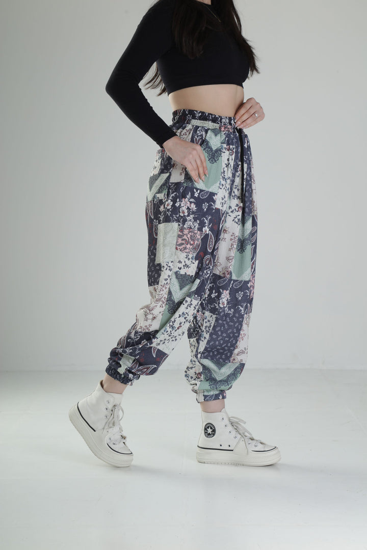 Çiçek Desenli Bürümcük Kumaş Pantolon