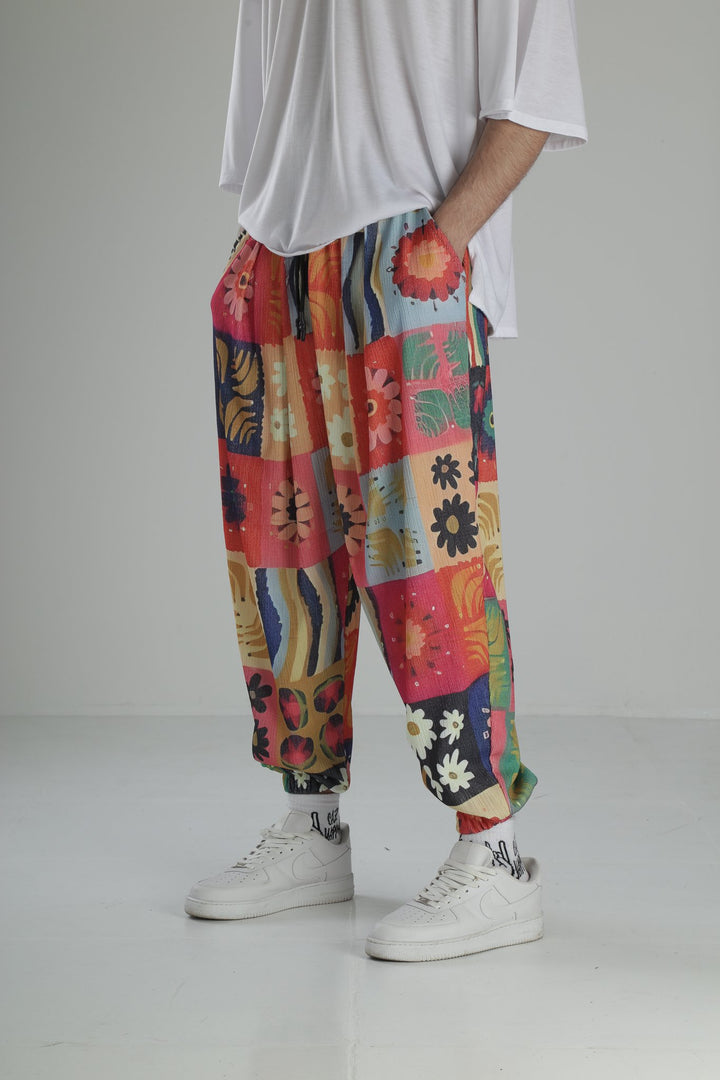 Çiçek Desenli Bürümcük Pileli Şalvar