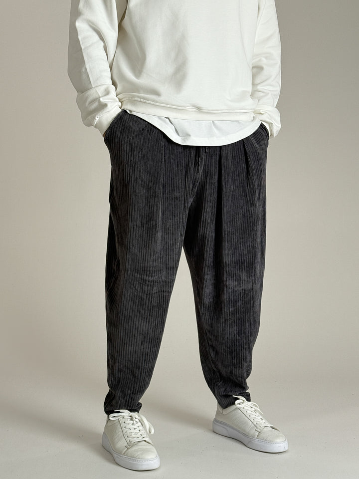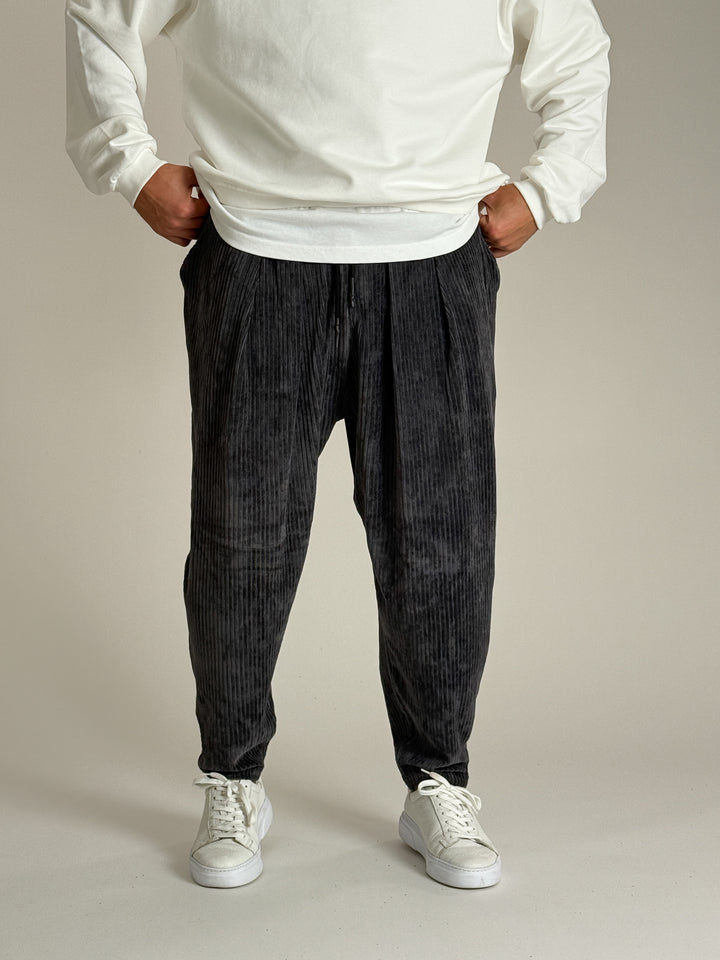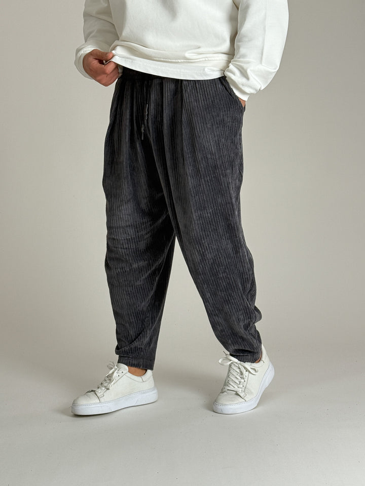 Erkek Gri Kadife Pileli Yarım Şalvar