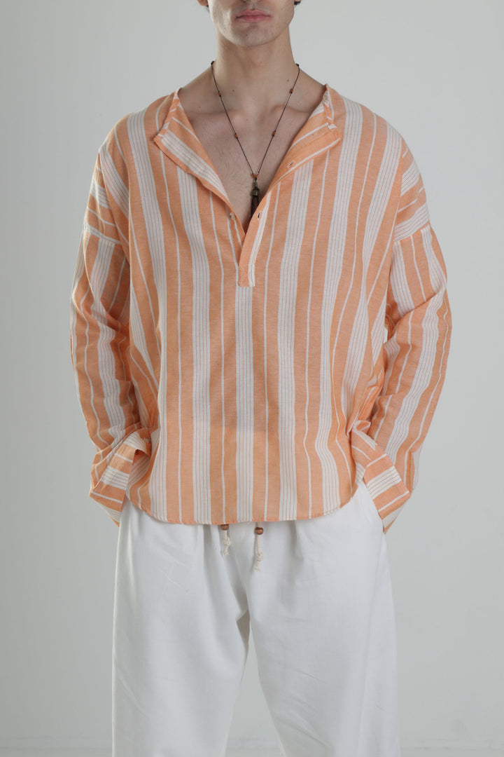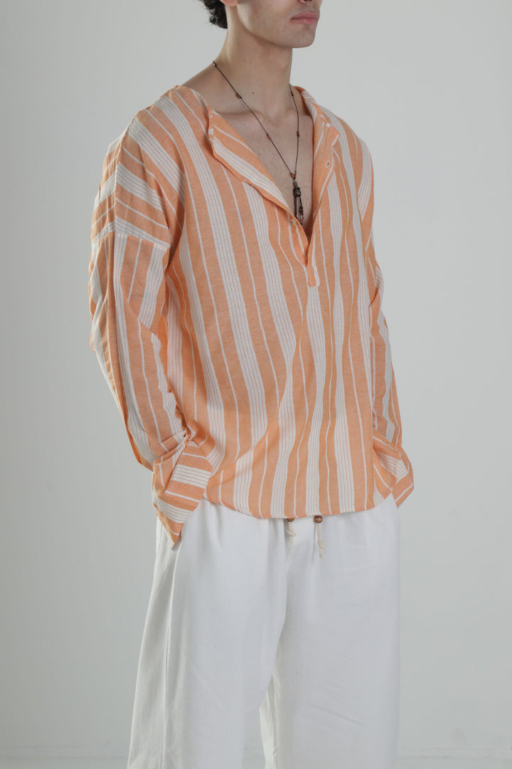 Erkek Hakim Yaka İnce Pamuk Turuncu Gömlek COC2390