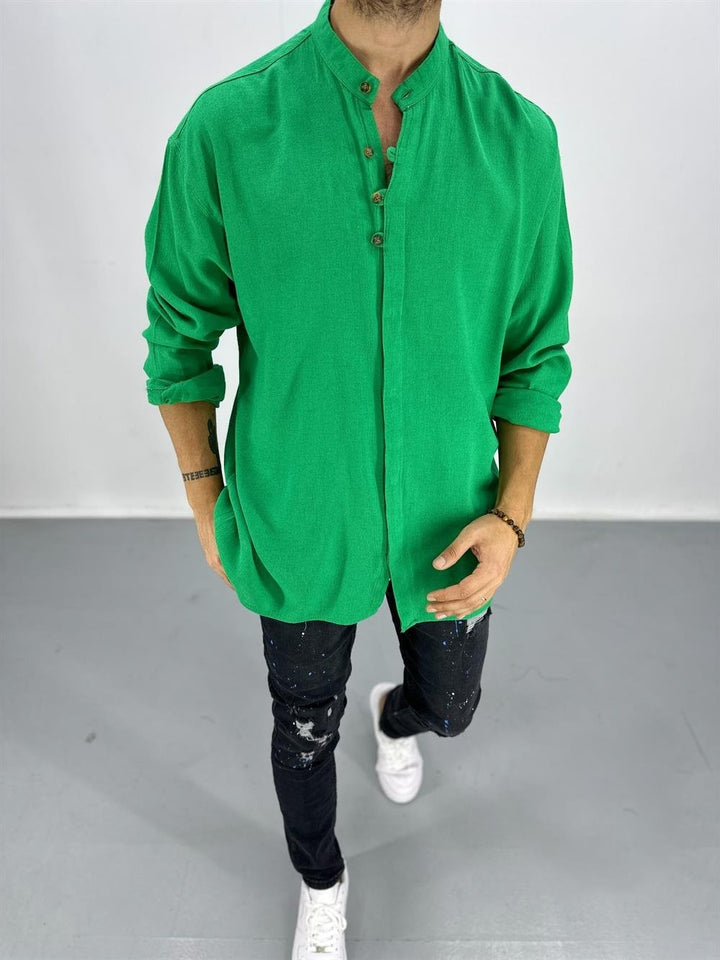 Erkek Hakim Yaka Yeşil Gömlek (Pamuk)