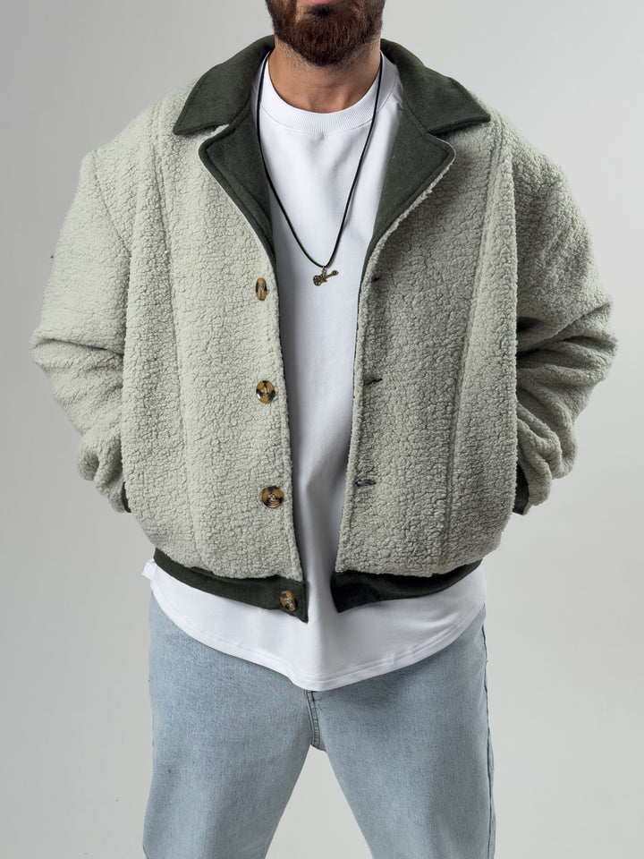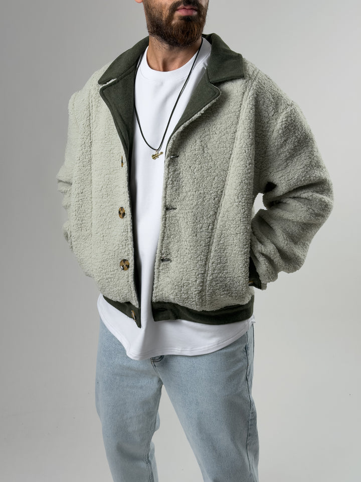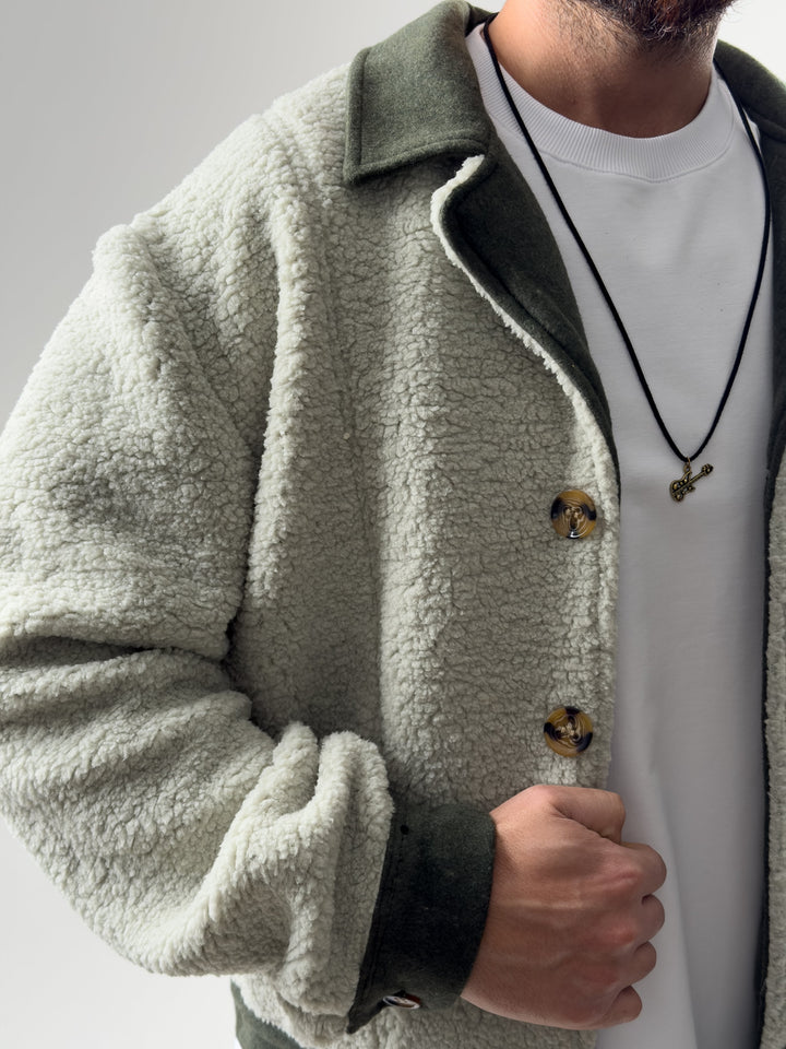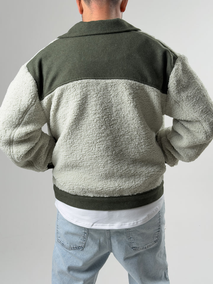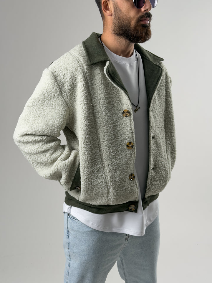 Erkek Kaşe Detaylı Yeşil Peluş Hırka COC2587