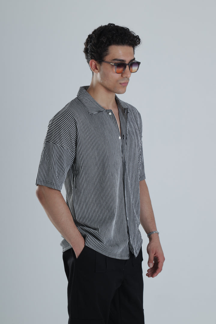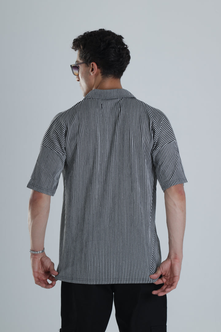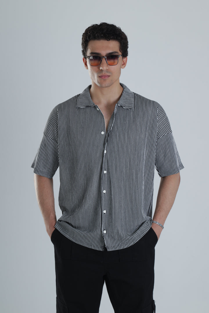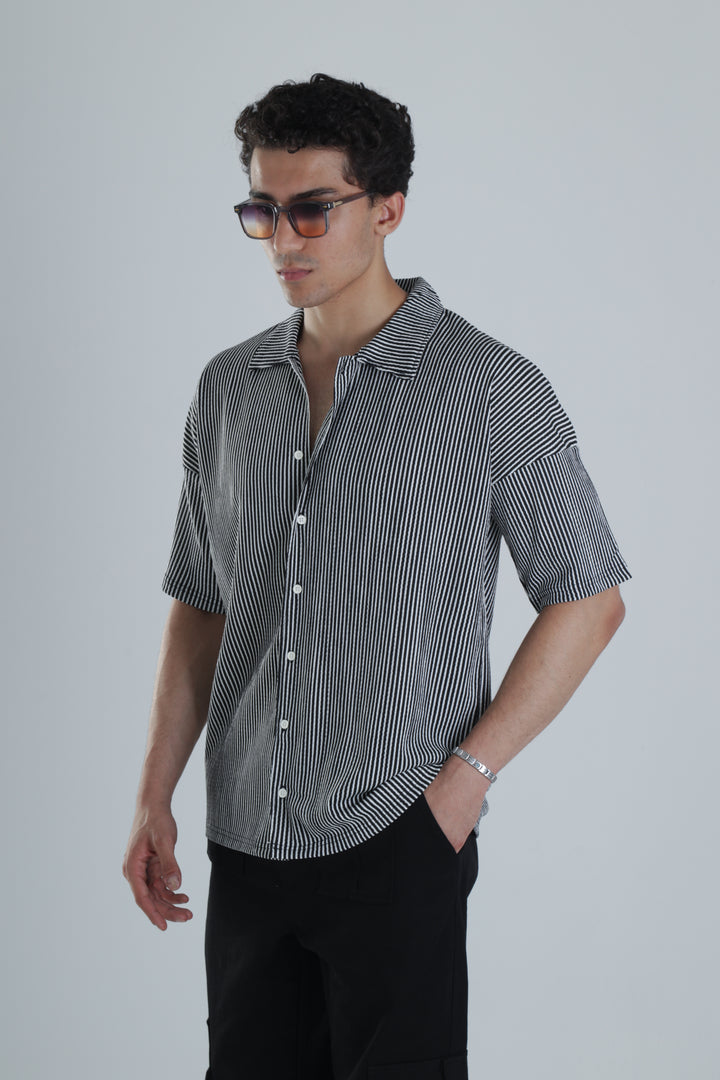 Erkek Siyah Beyaz Çizgili Casual Gömlek COC1163