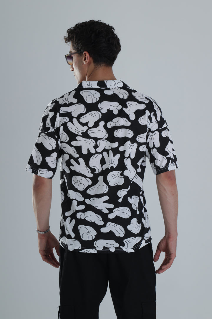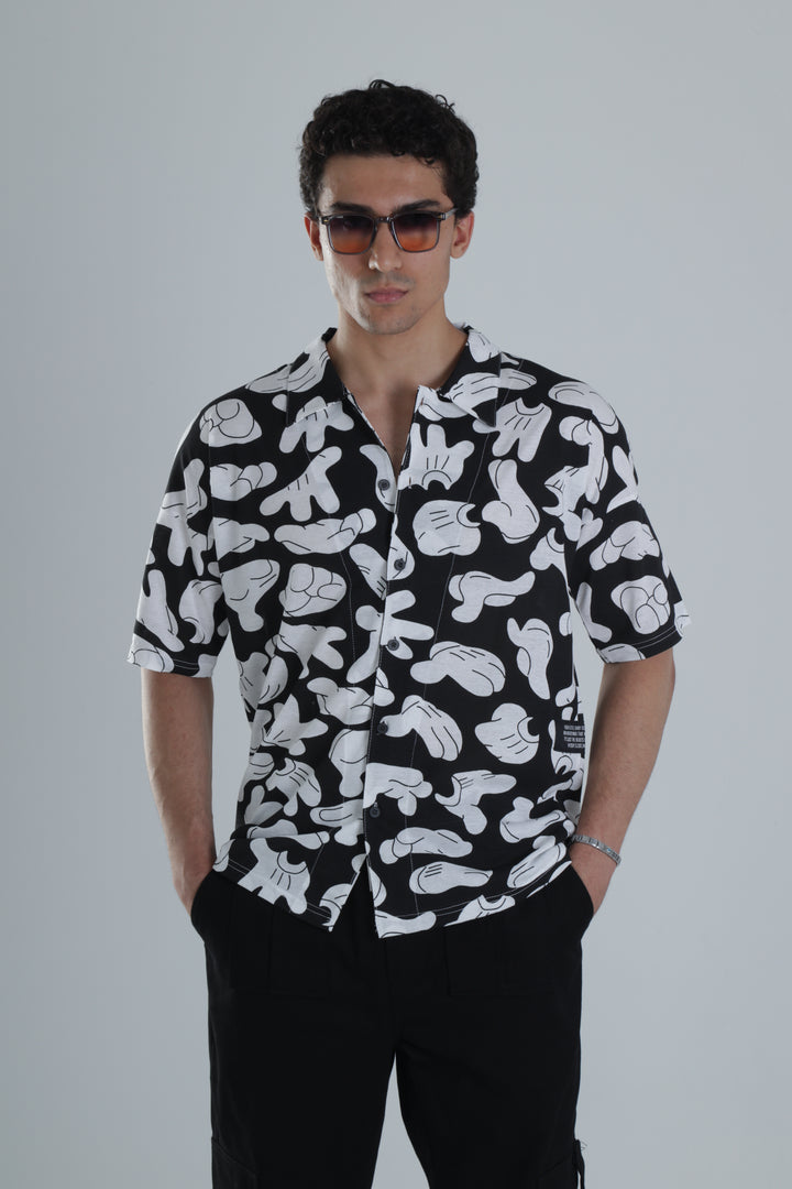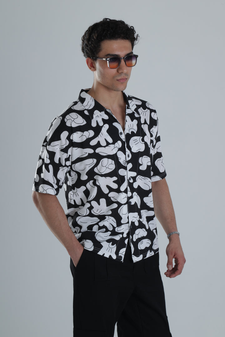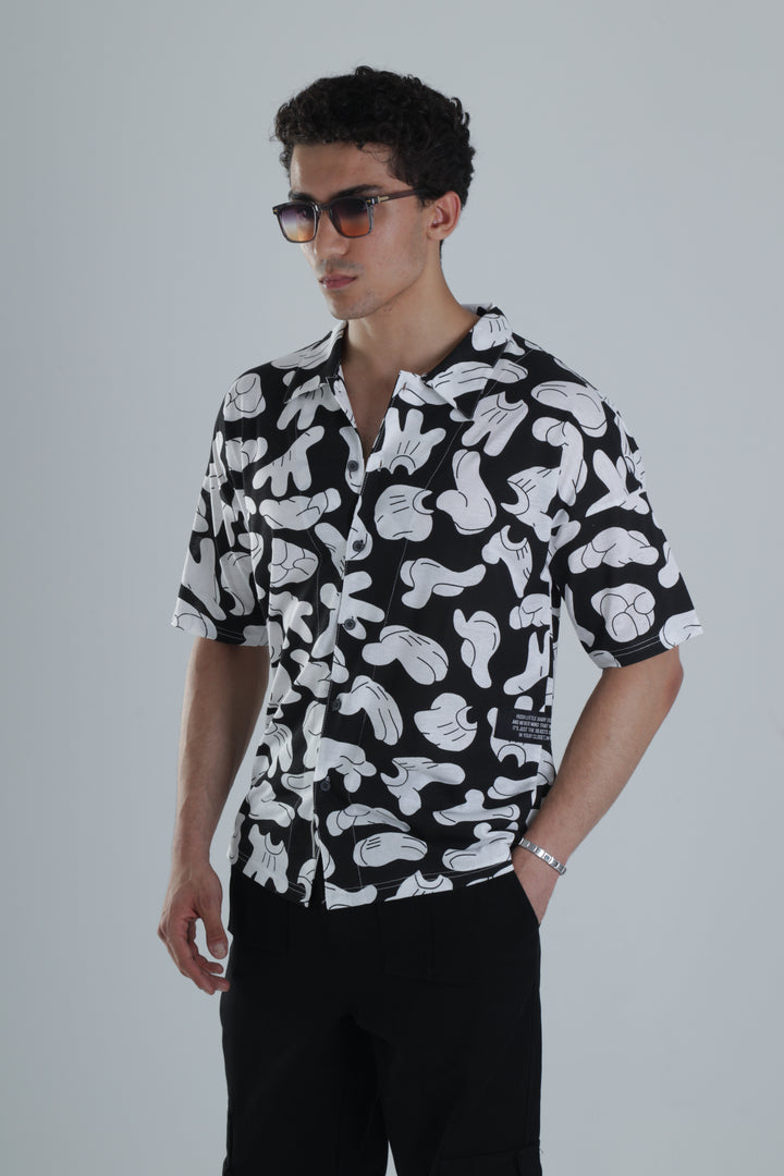 Erkek Siyah Beyaz Desenli Hawai Gömlek