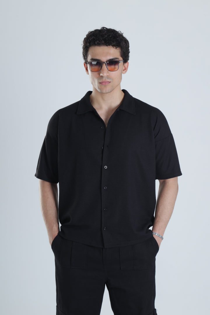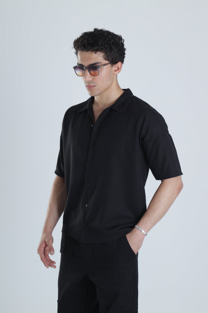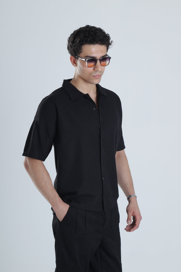 Erkek Siyah Gofre Gömlek