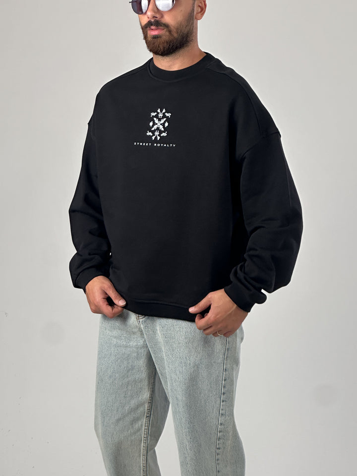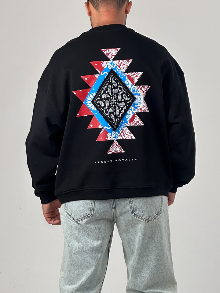 Erkek Siyah Tasarım Etnik Sweatshirt COC1047