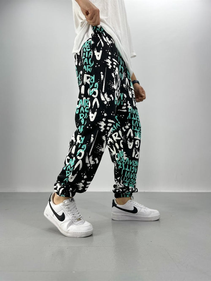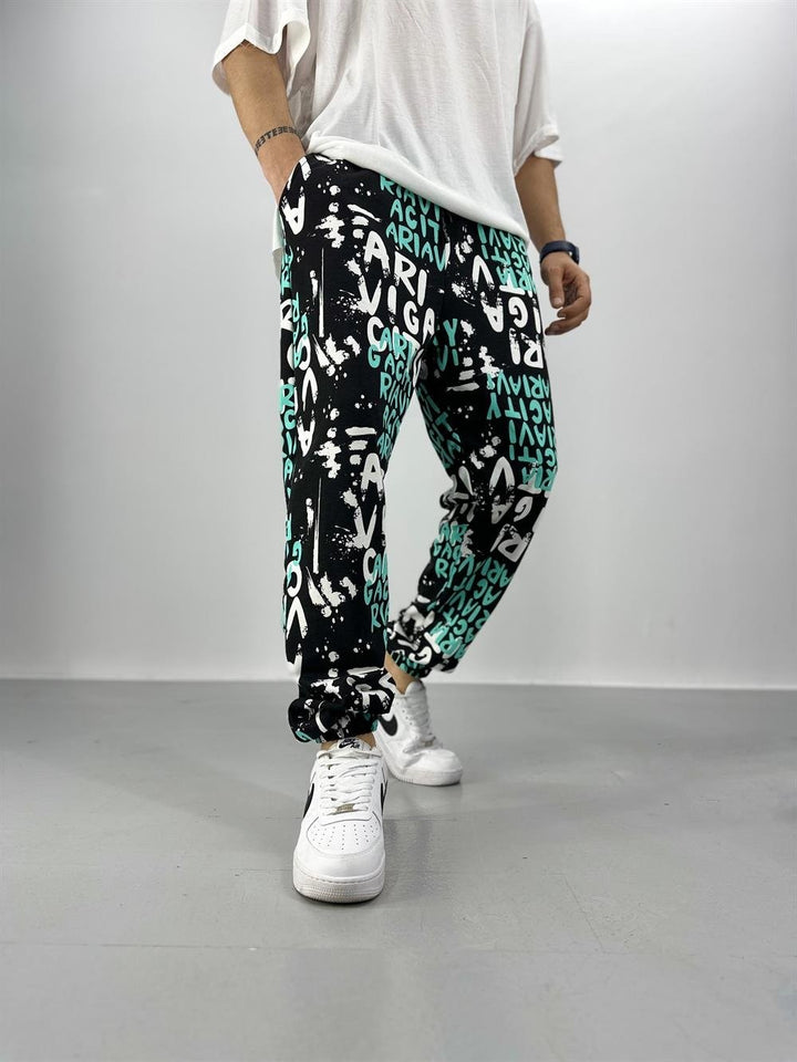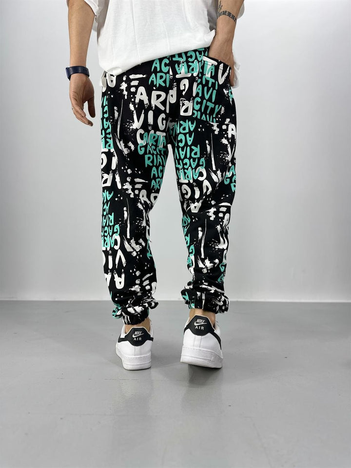 Erkek Turkuaz-Siyah Renkli Grafiti Jogger