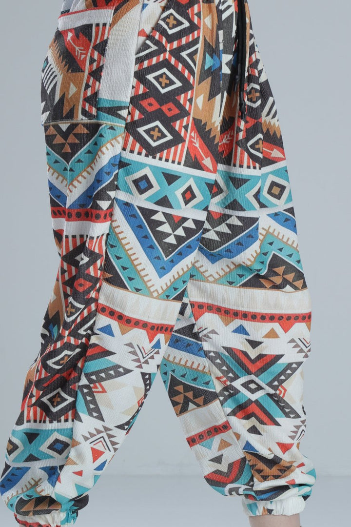 Etnik Desenli Pileli Yarım Şalvar COC2246
