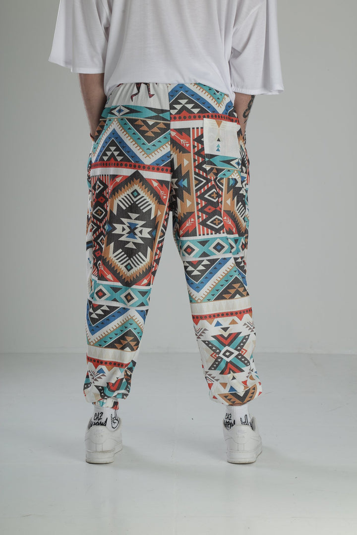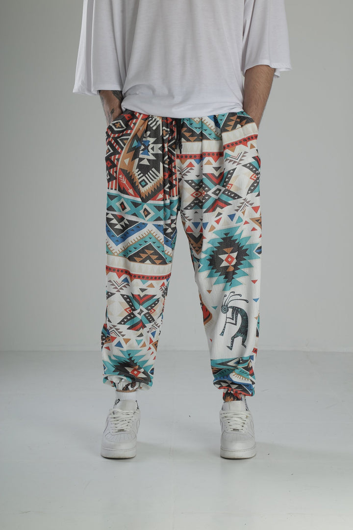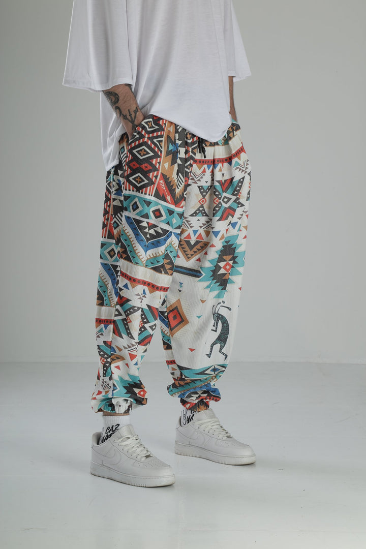 - Tasarım: Etnik desenli, pileli yarım şalvar modeli.