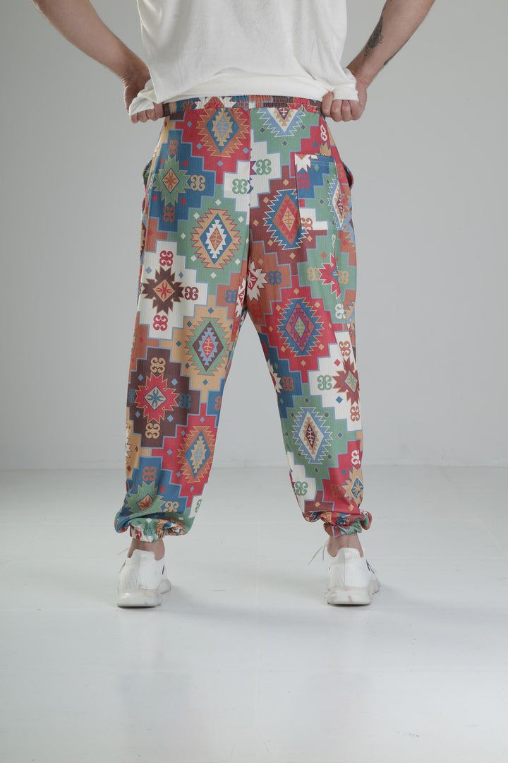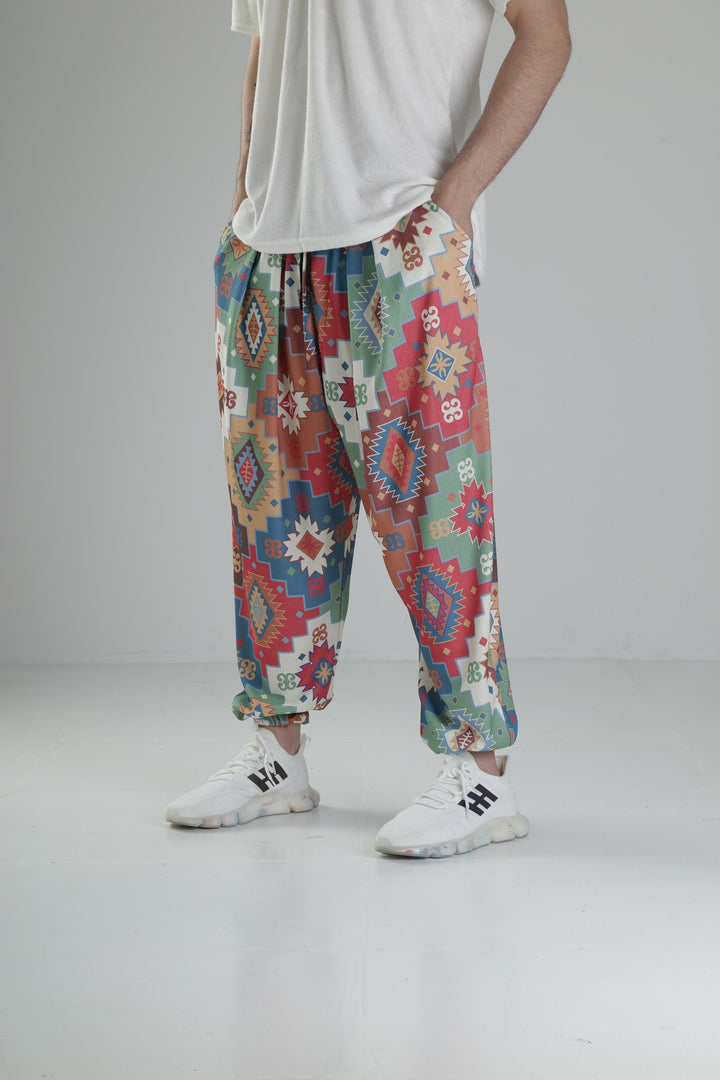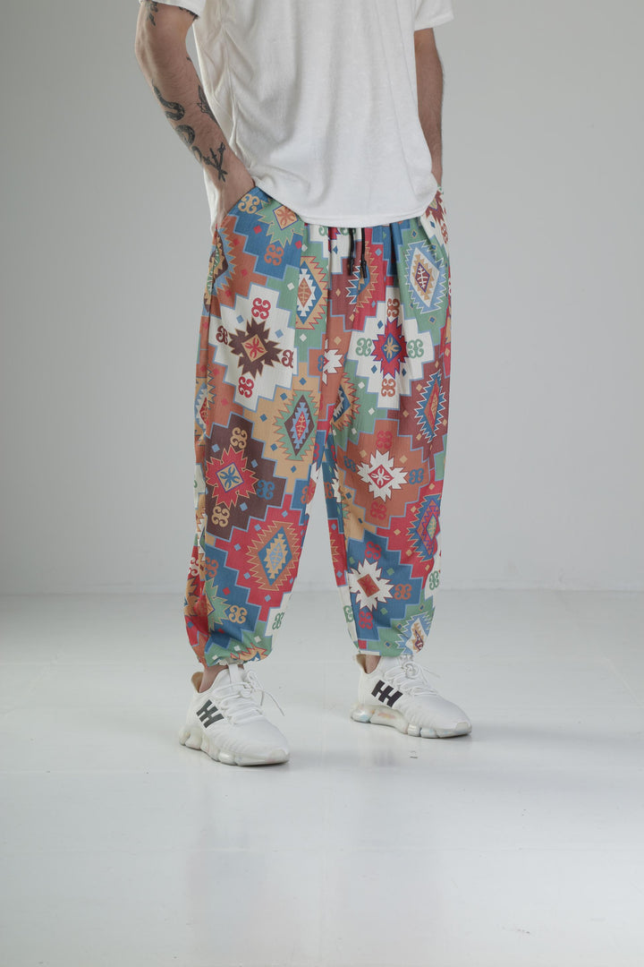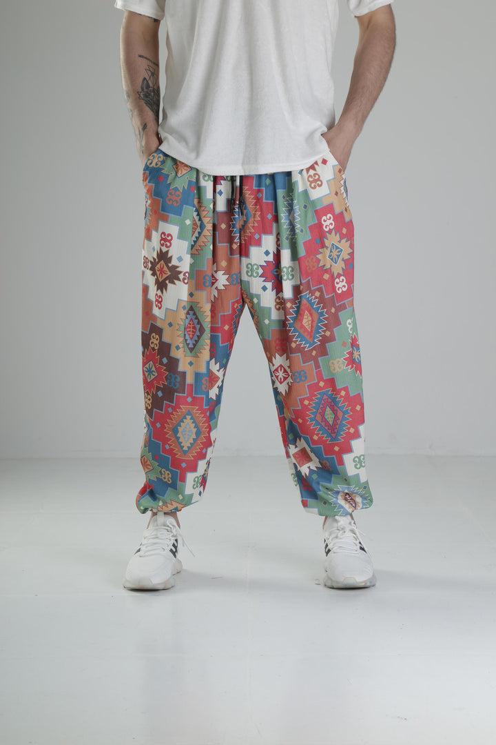 Etnik Desenli Pileli Yarım Şalvar