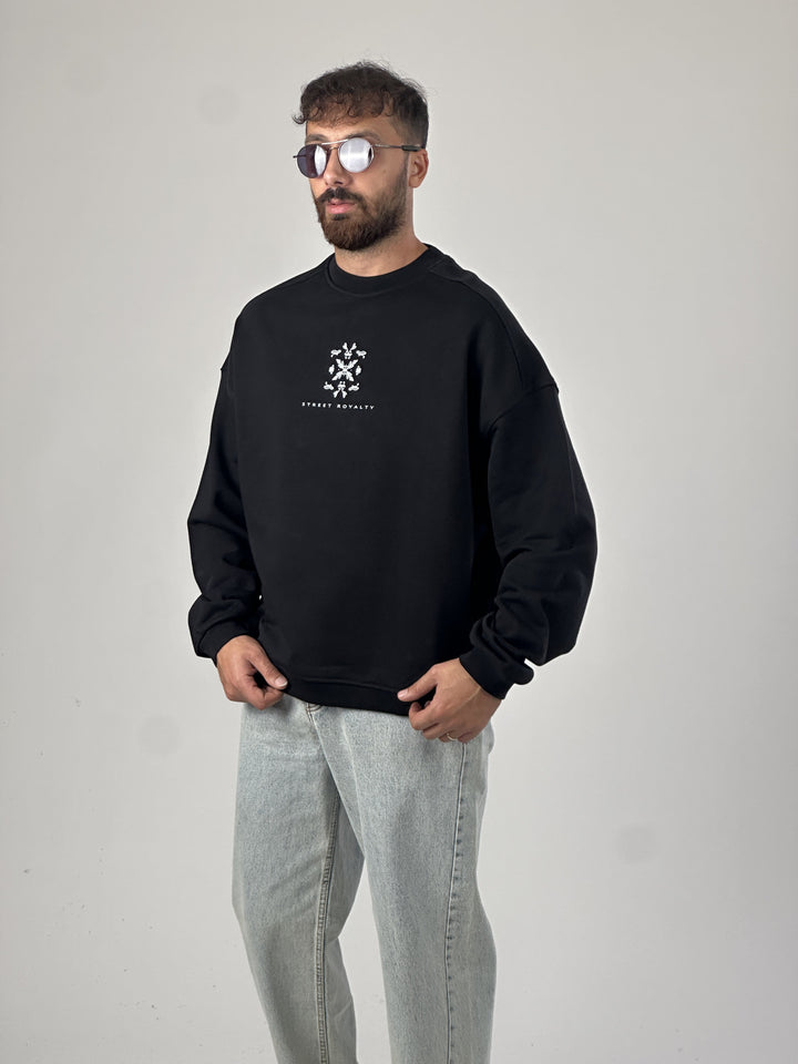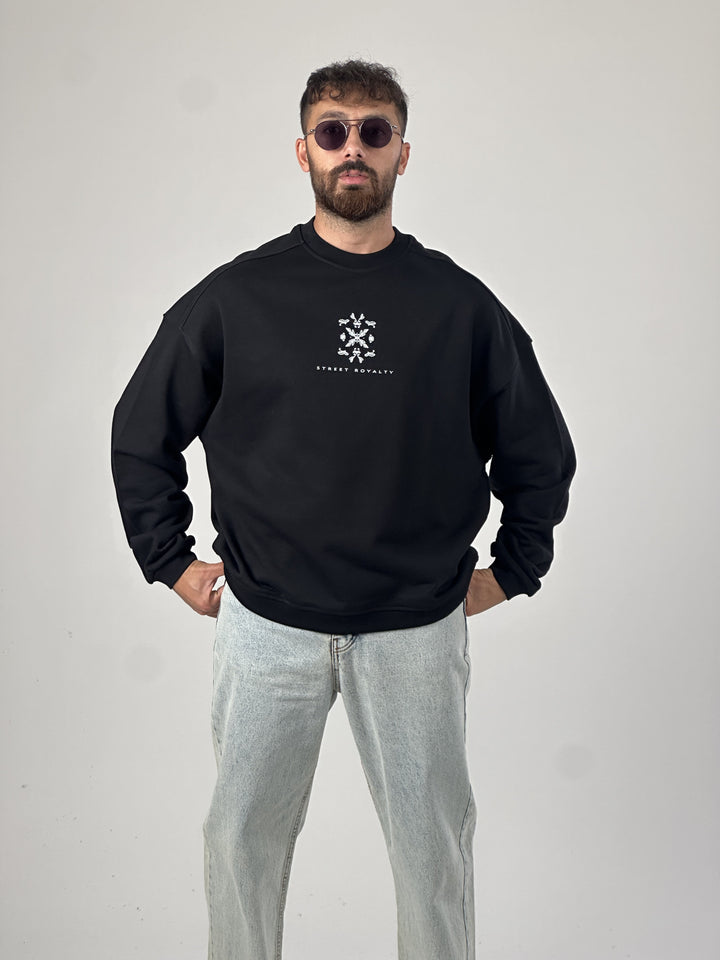 Etnik Desenli Tasarım Erkek Siyah Sweatshirt COC1031
