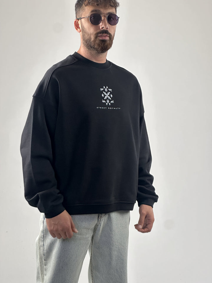 Etnik Desenli Tasarım Erkek Siyah Sweatshirt