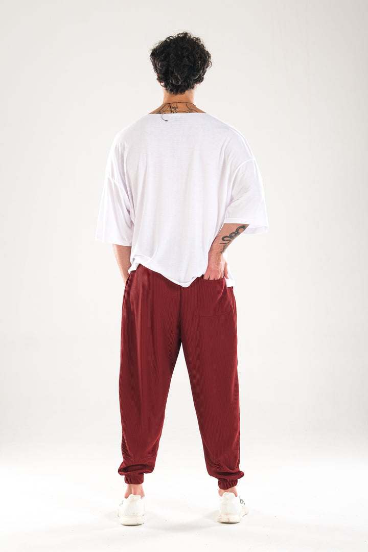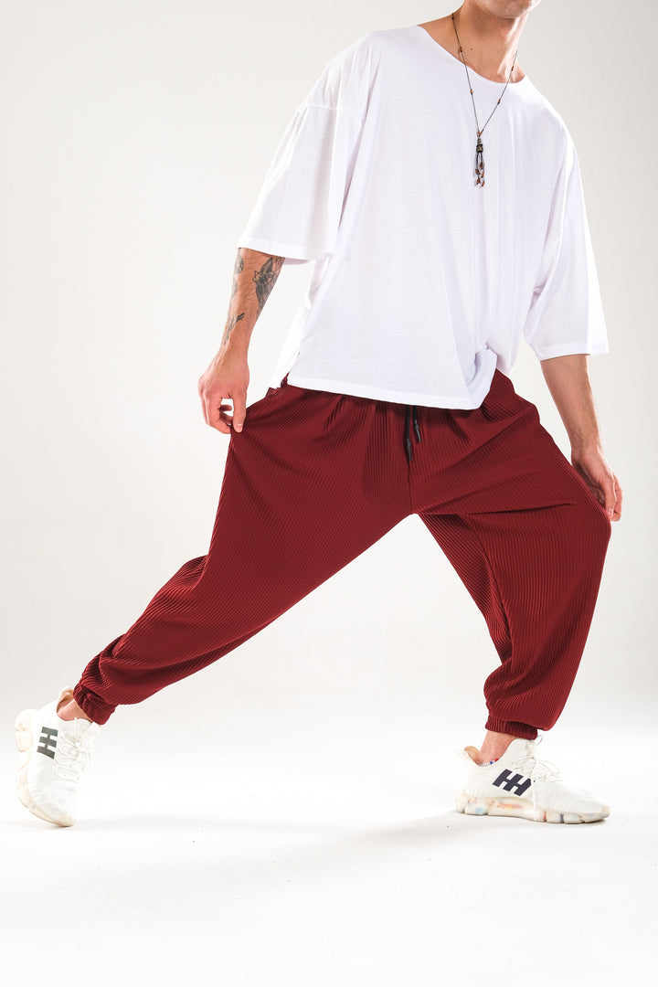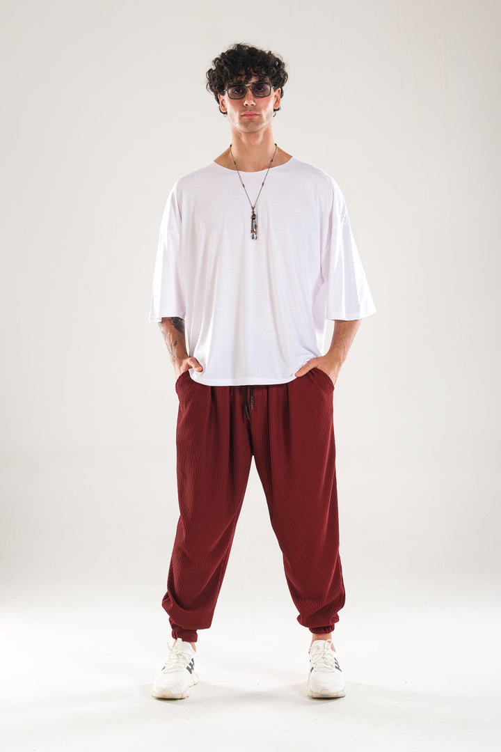 Fitilli Pileli Bordo Şalvar Pantolon COC1127