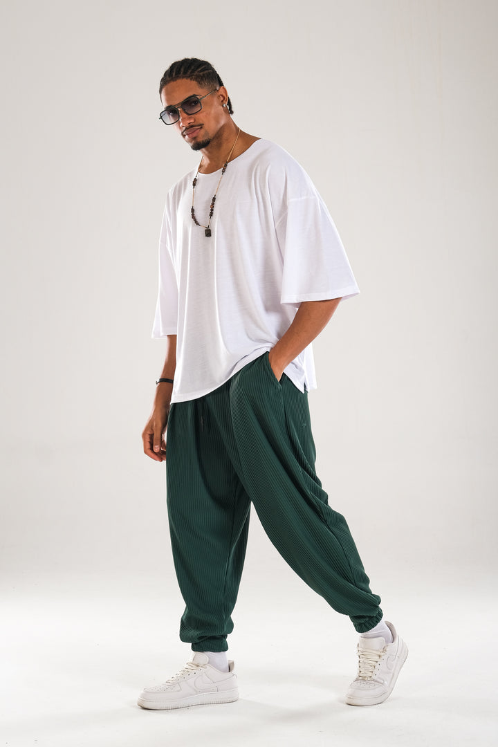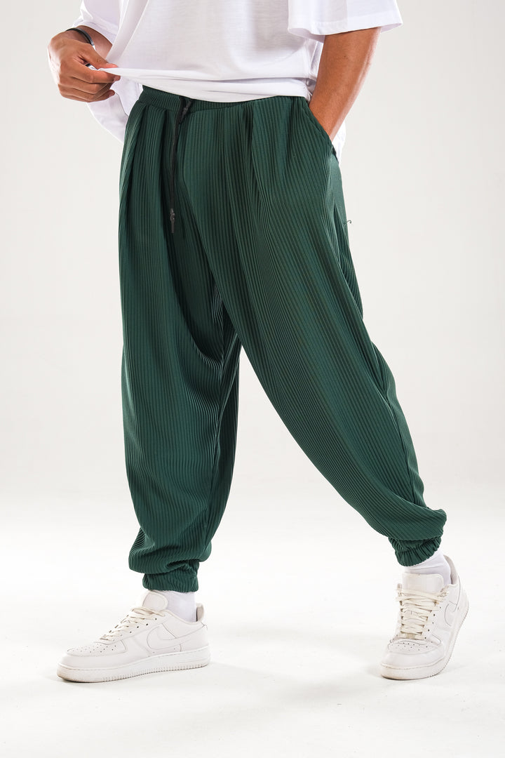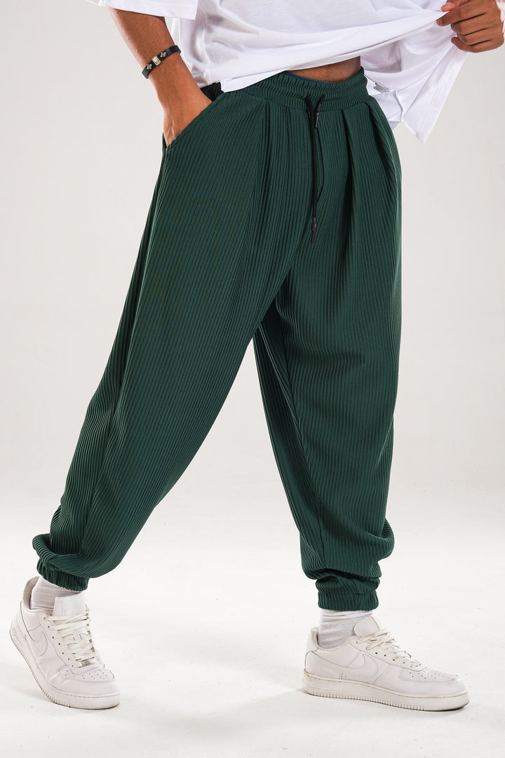 Fitilli Pileli Yeşil Şalvar Pantolon