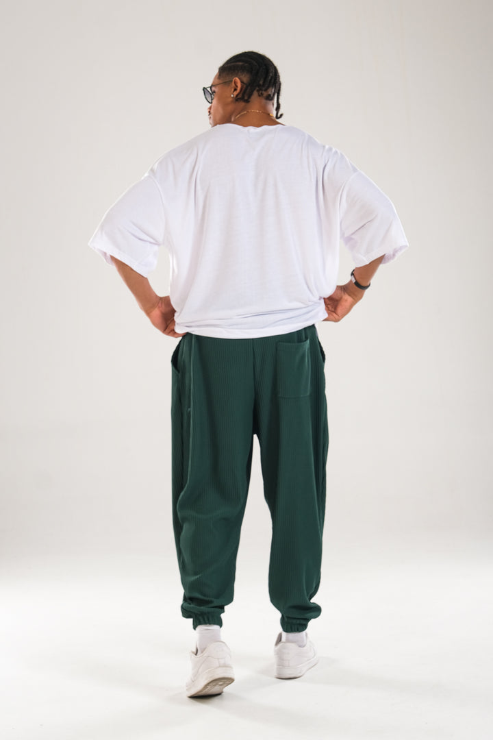 Fitilli Pileli Yeşil Şalvar Pantolon COC1128