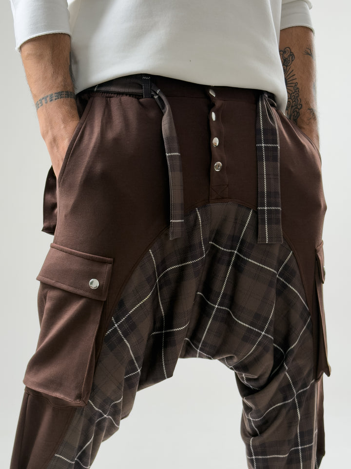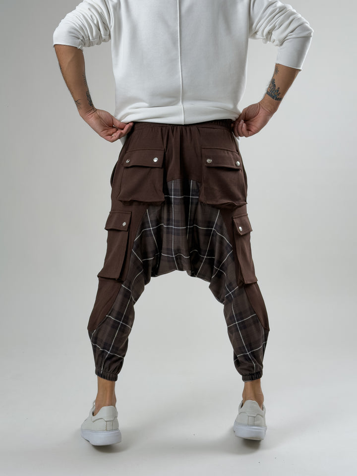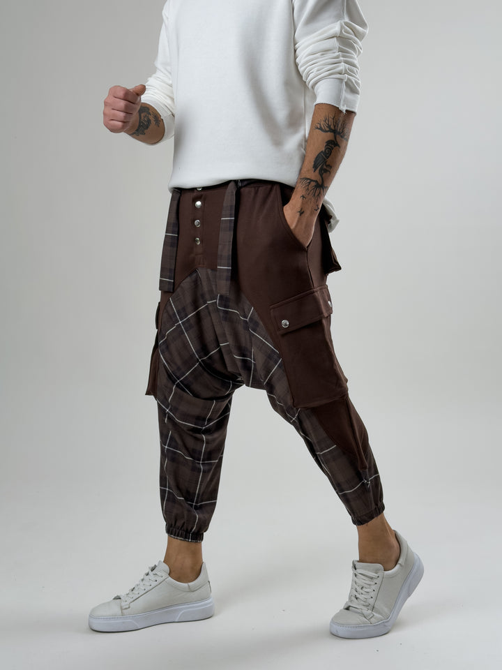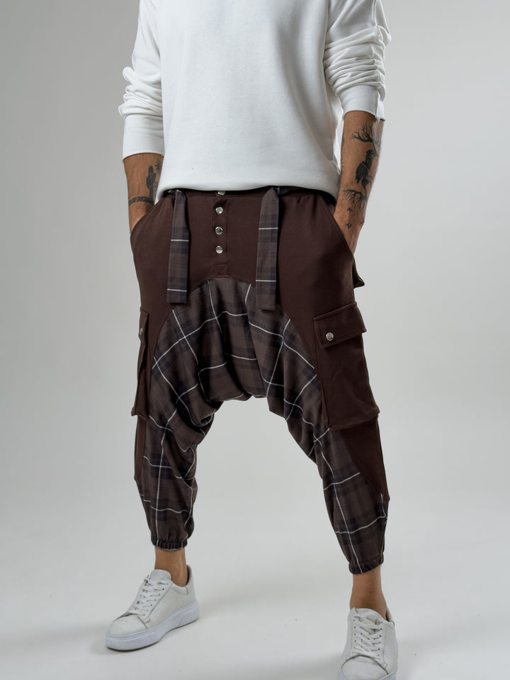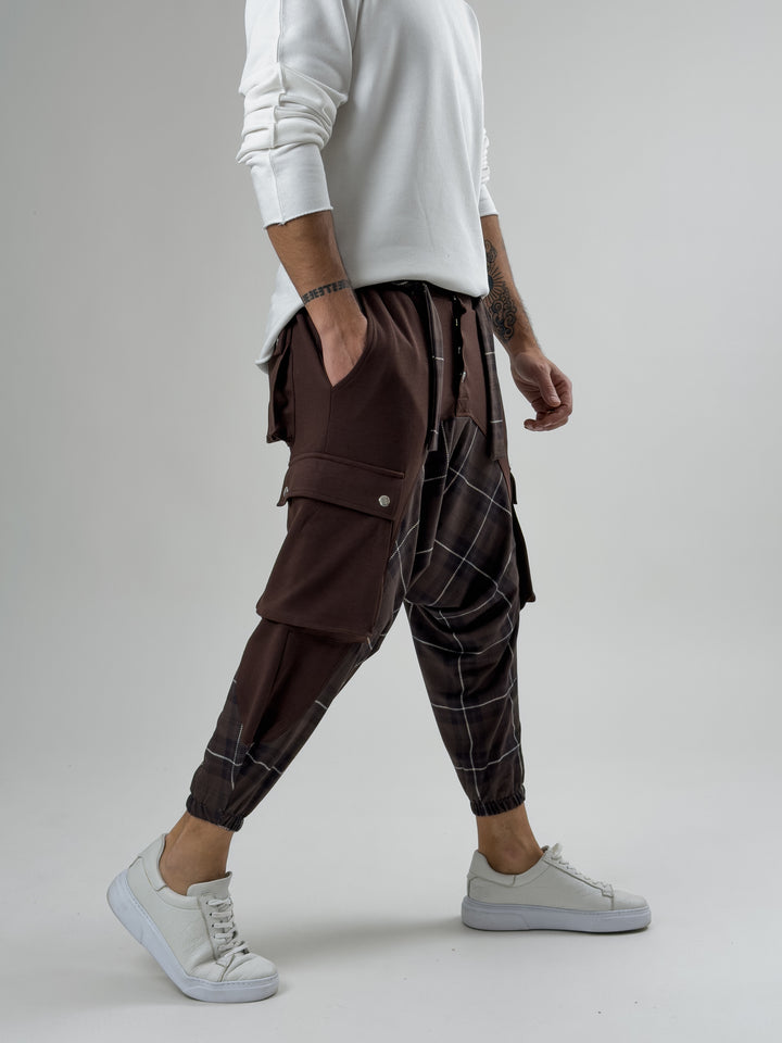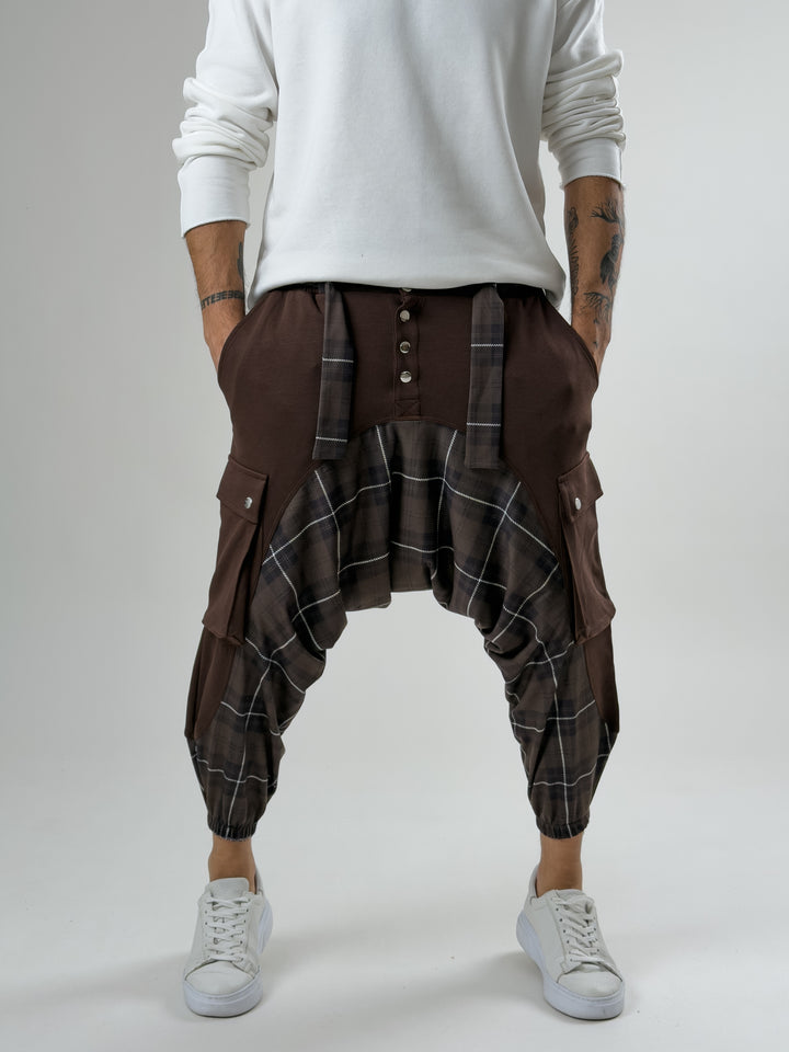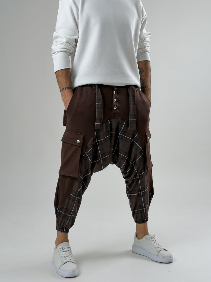 Garni Tasarım Erkek Kahverengi Etnik Desenli Spor Şalvar COC2616