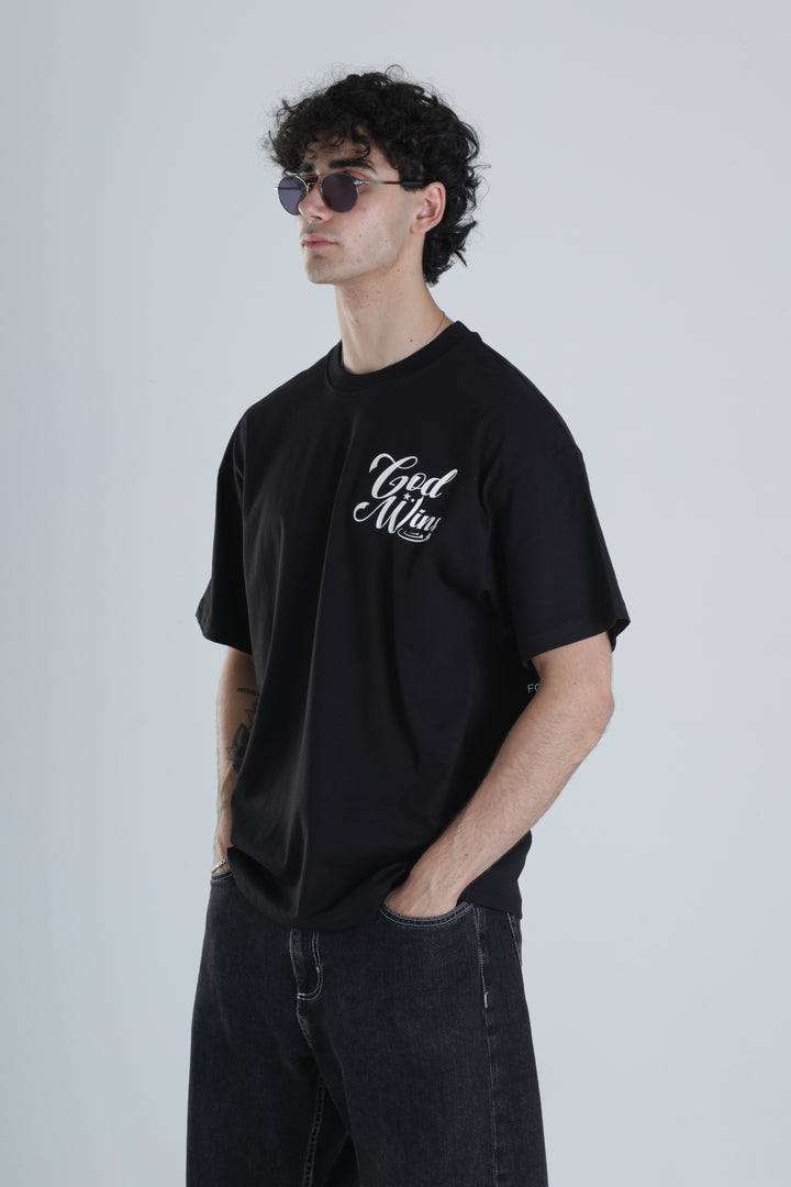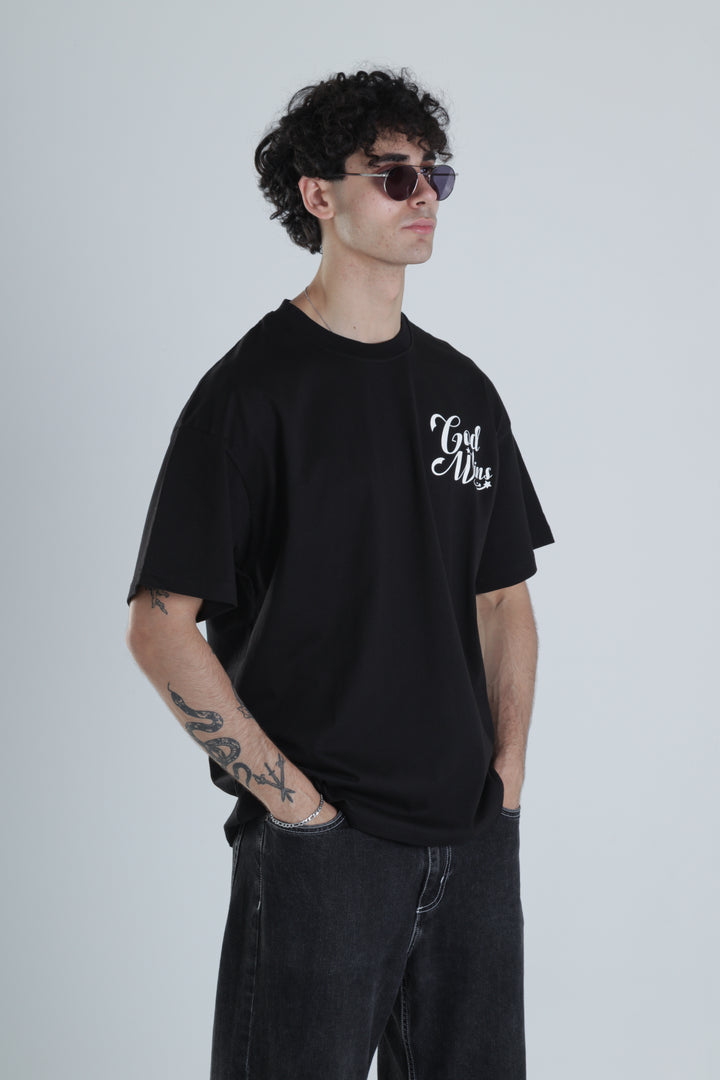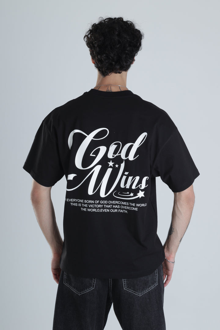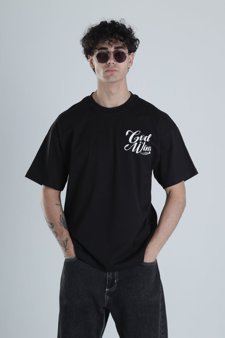 God Wins Siyah Oversize Tasarım T-Shirt COC1389