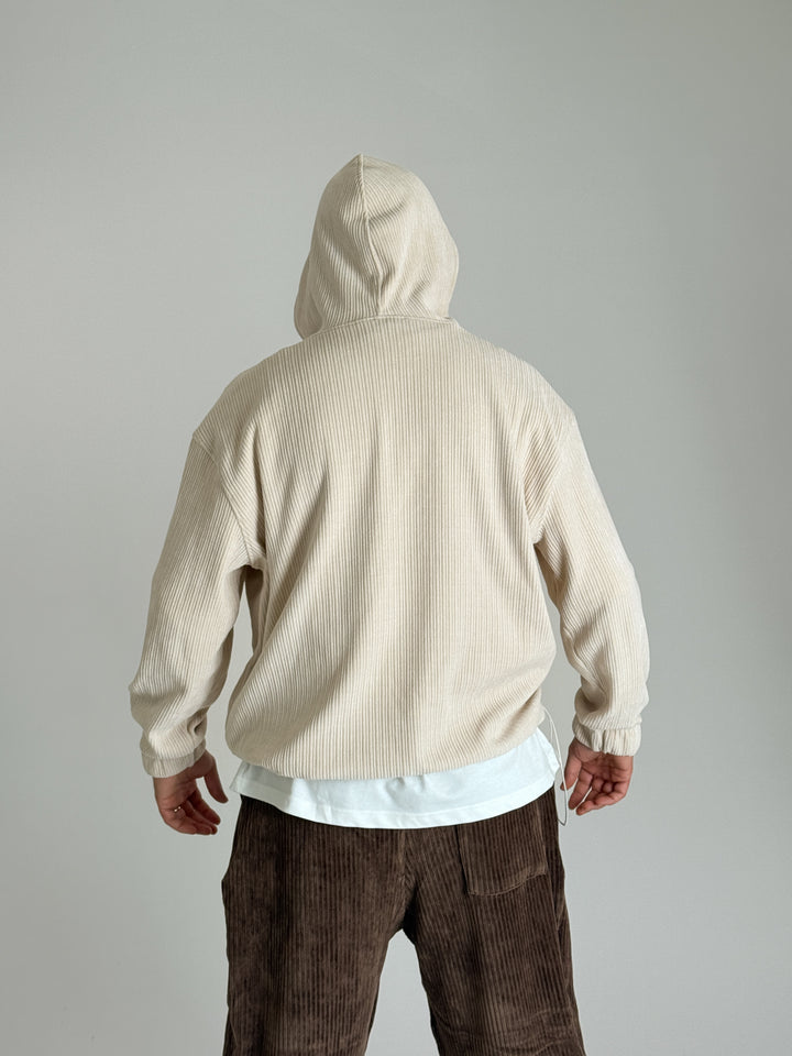 Kadife Dokulu Bej Oversize Kapüşonlu Erkek Sweatshirt COC1088