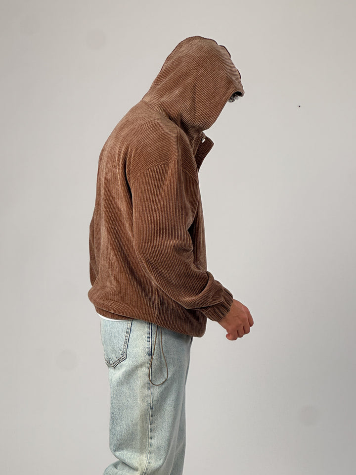 Kadife Dokulu Kahve Oversize Kapüşonlu Erkek Sweatshirt COC1037