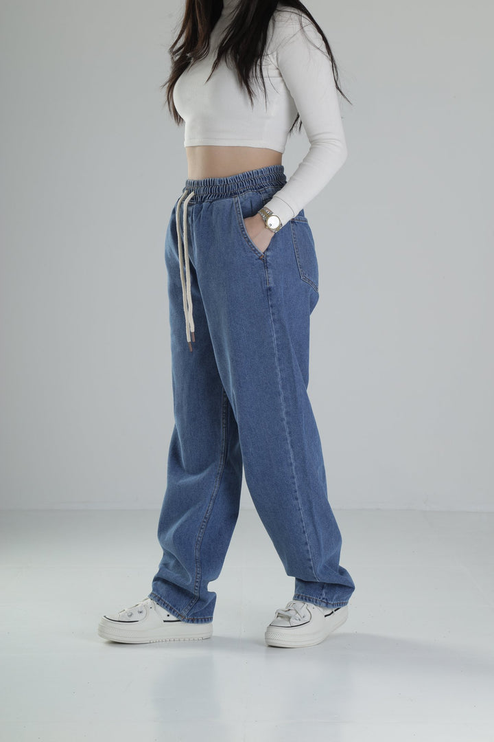 Kadın Koyu Mavi Baggy Kot Pantolon