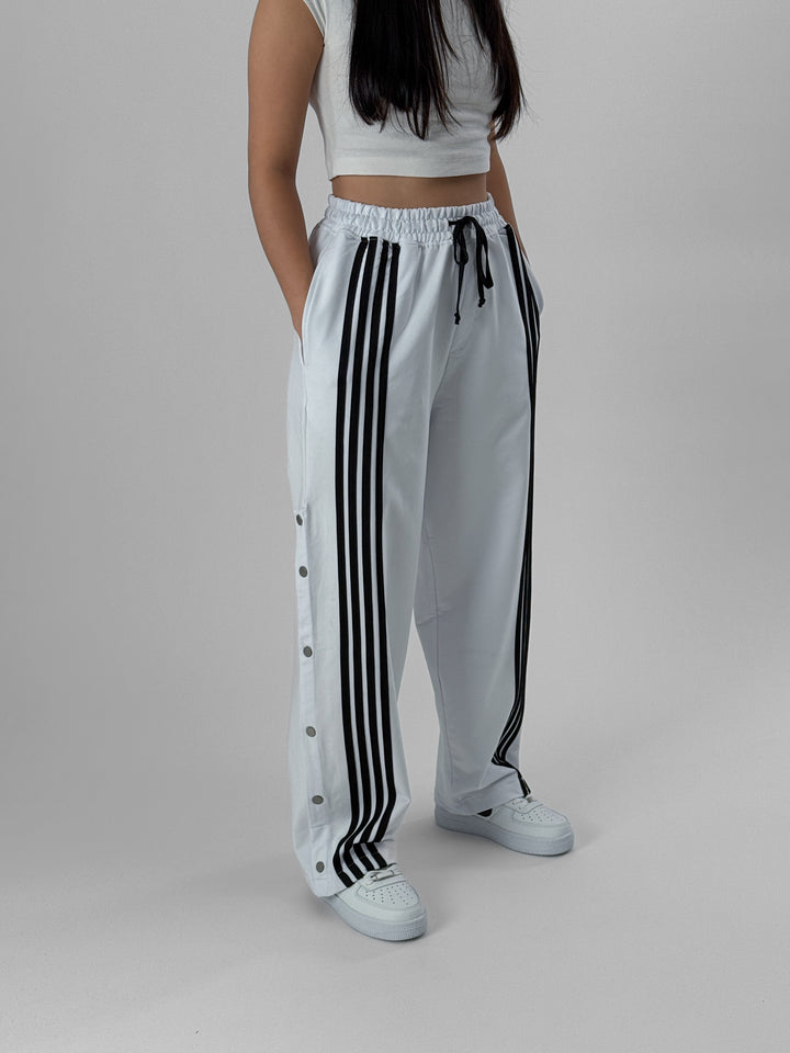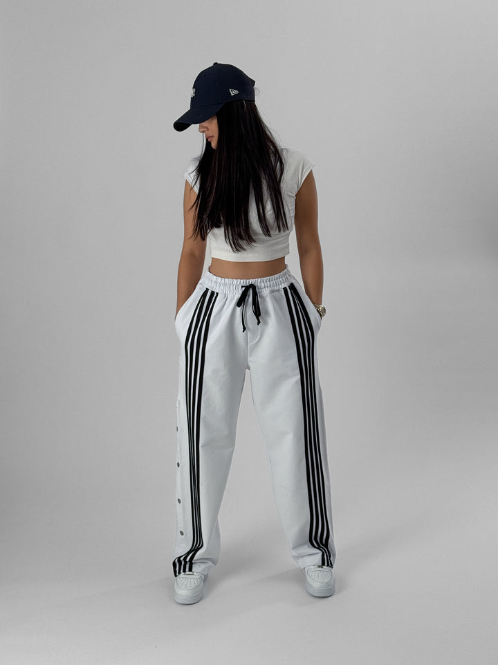 Kadın Şeritli Beyaz Baggy Pantolon COC1081