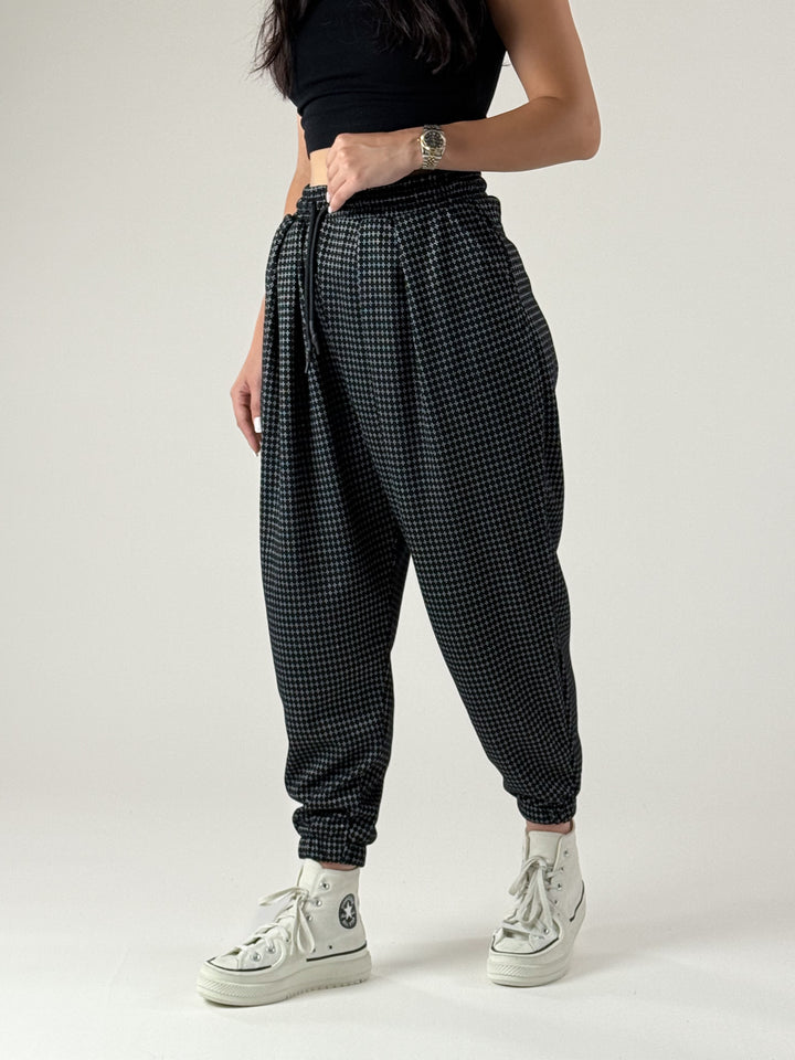 Kare Detaylı Pileli Kadın Jogger Pantolon