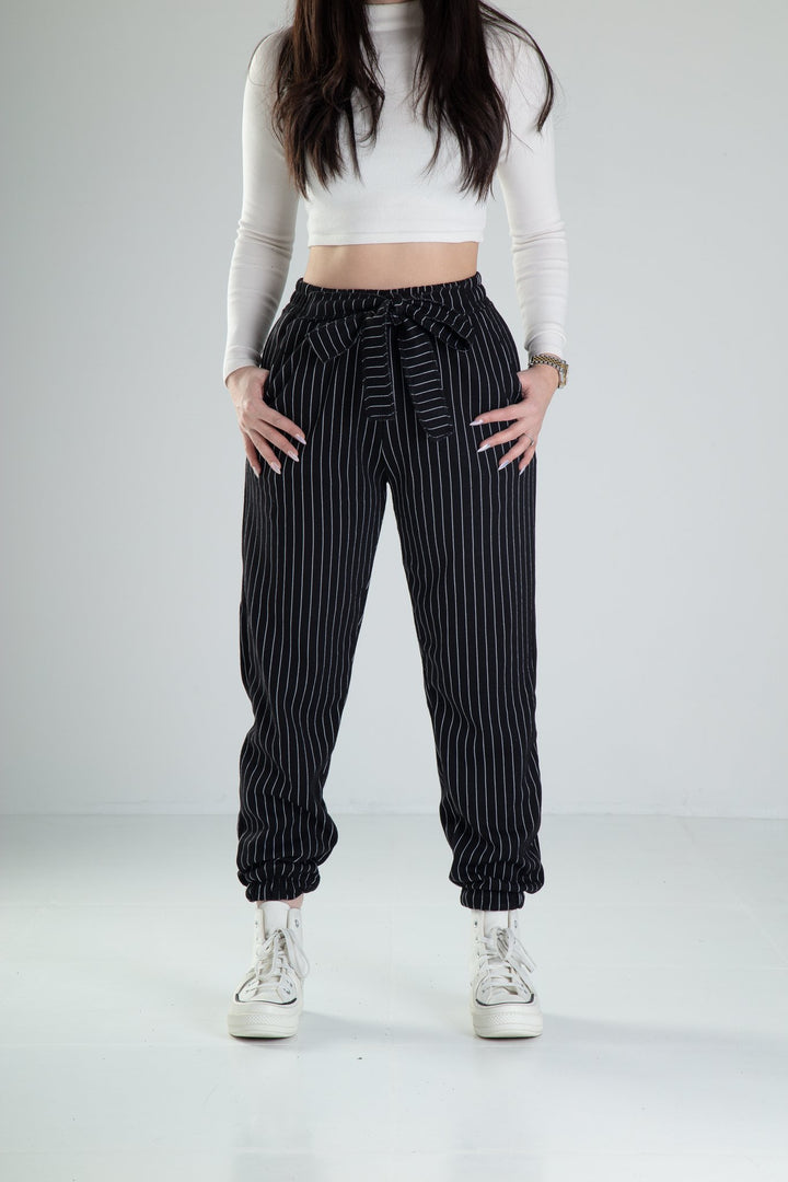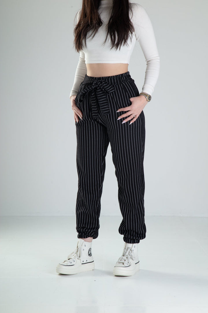 Kemer Detaylı Dik Çizgi Jogger Pantolon COC2190