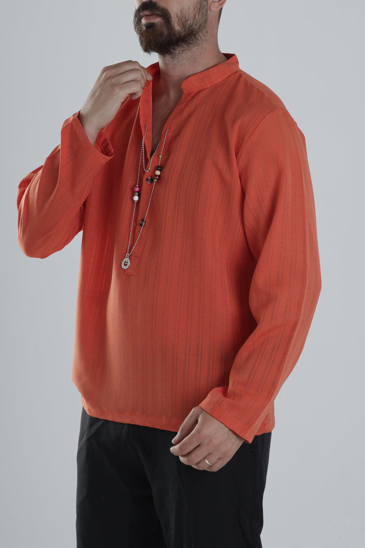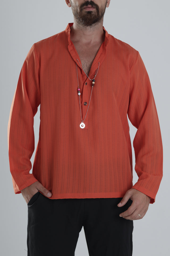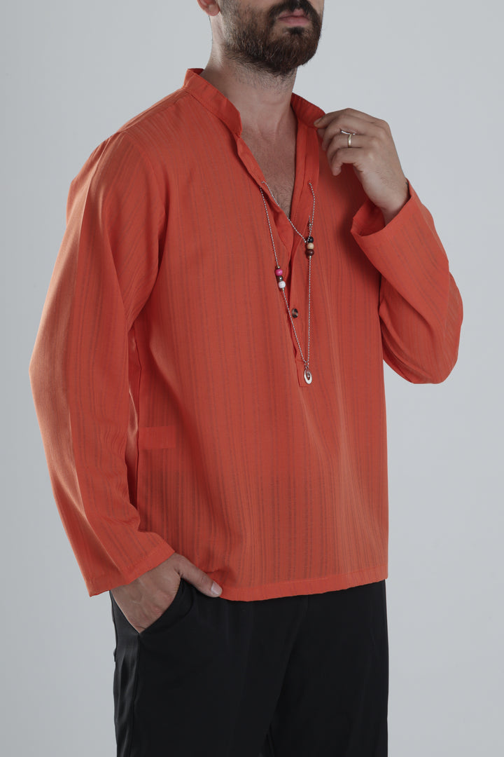Kendinden Kolyeli Turuncu Tasarım Gömlek COC1361