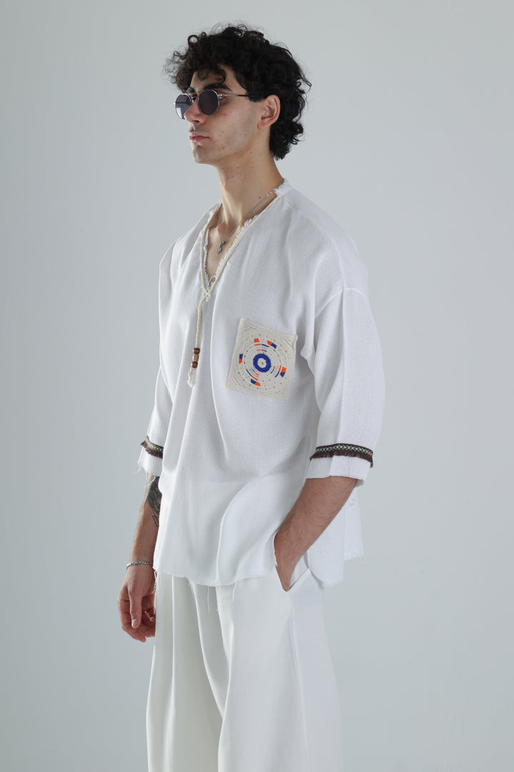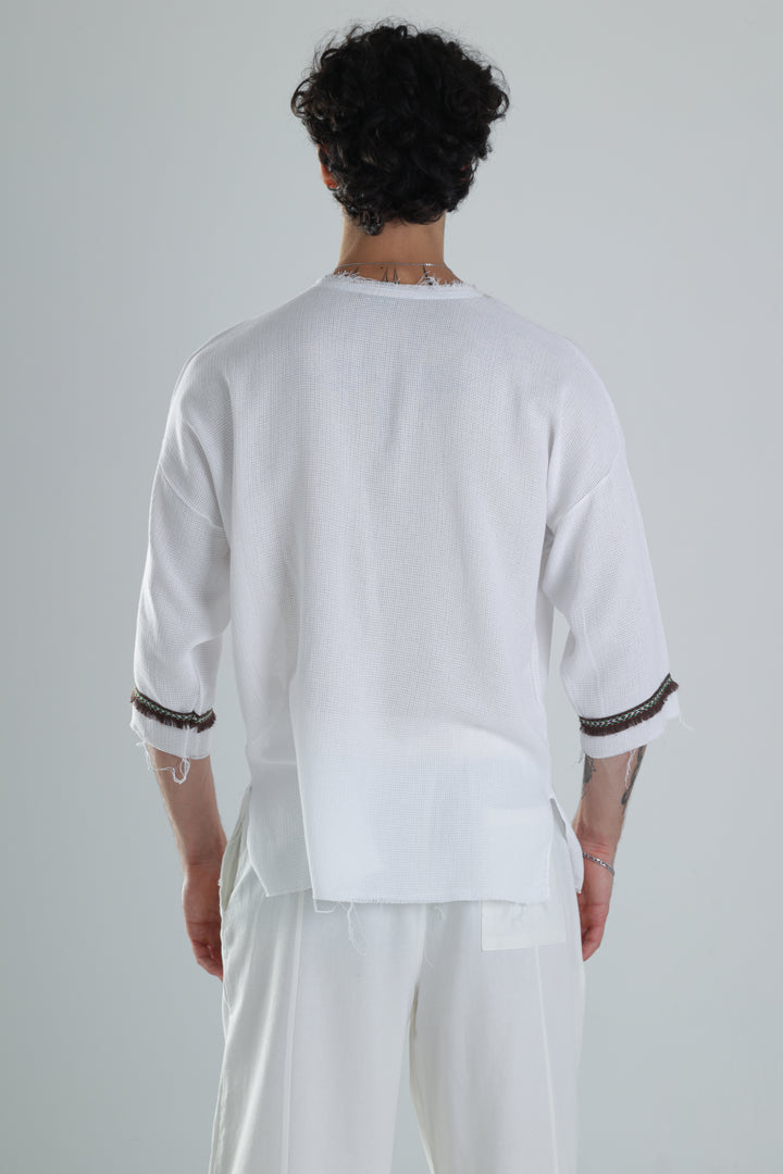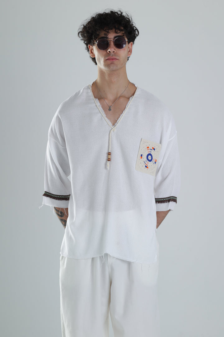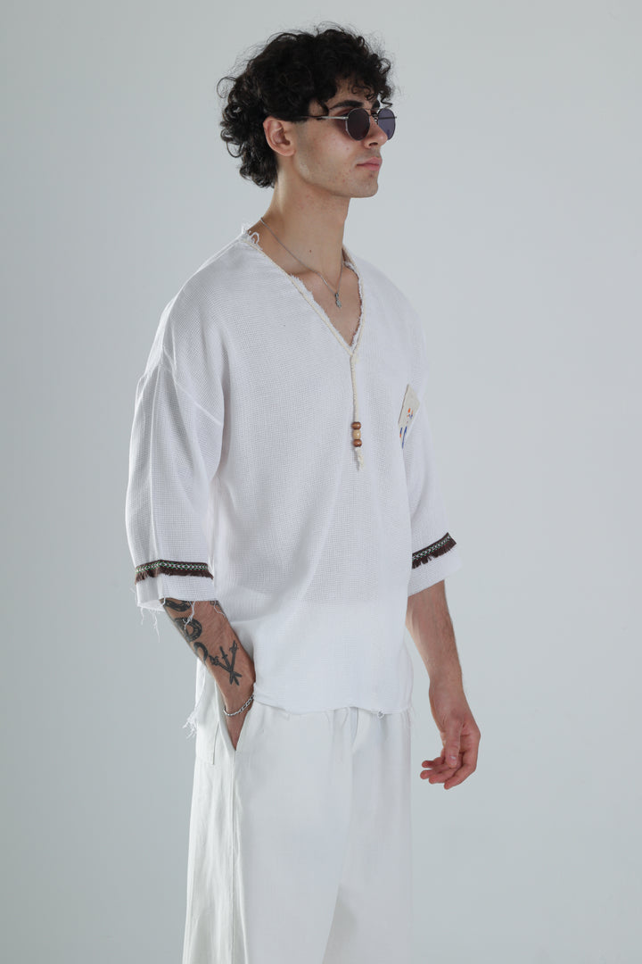 Kolyeli Tasarım Beyaz Fakir Kol T-Shirt COC1362