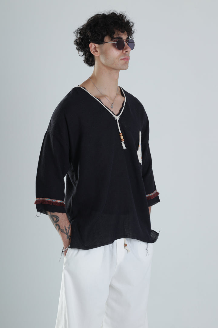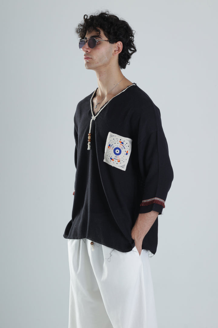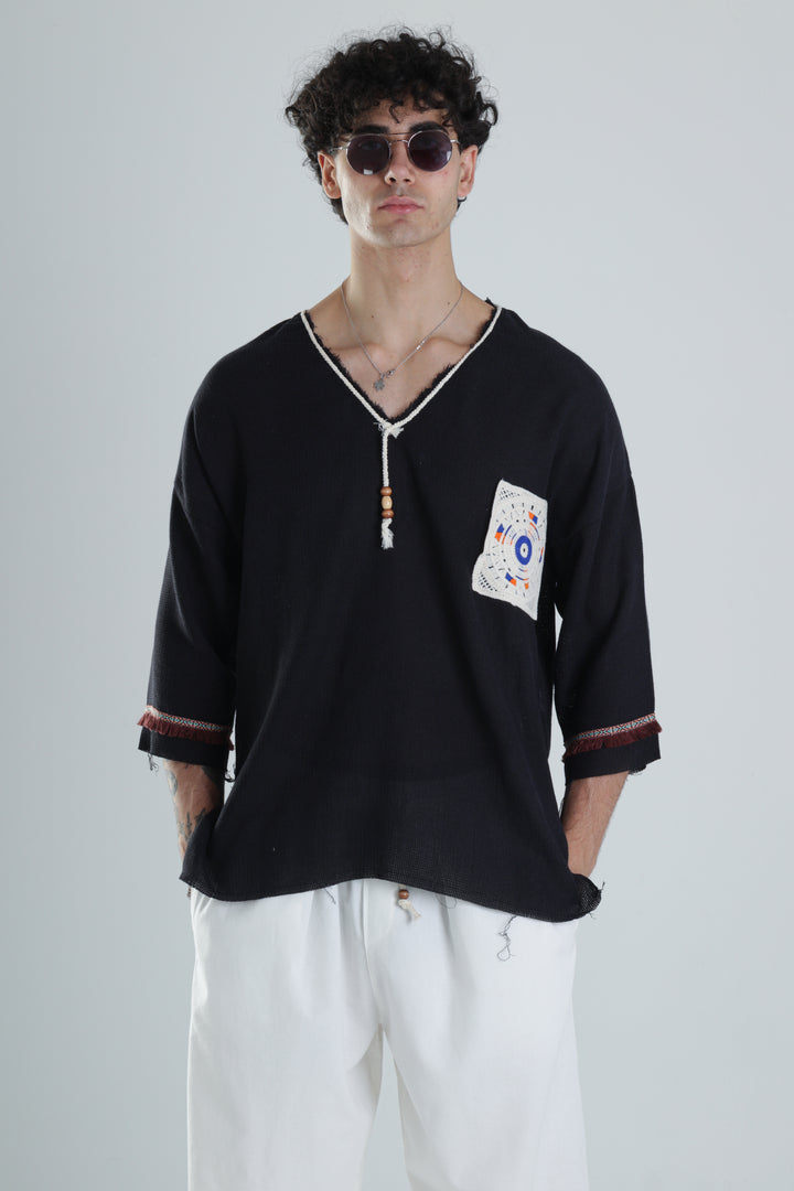 Kolyeli Tasarım Fakir Kol T-Shirt