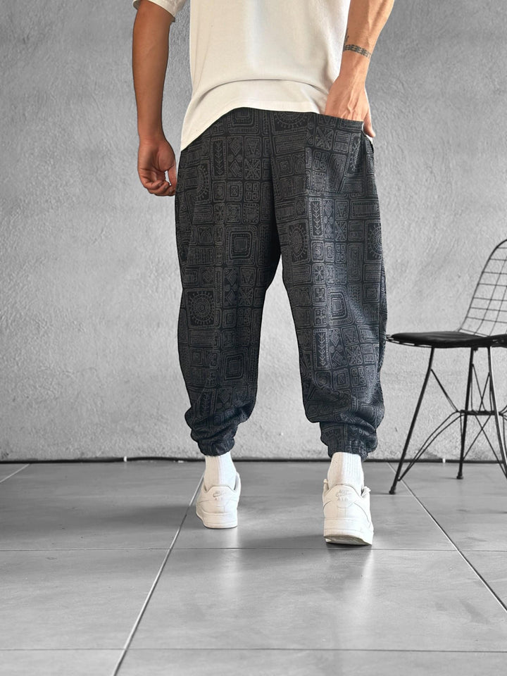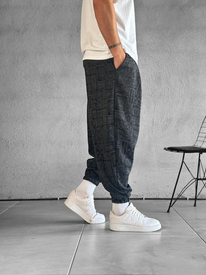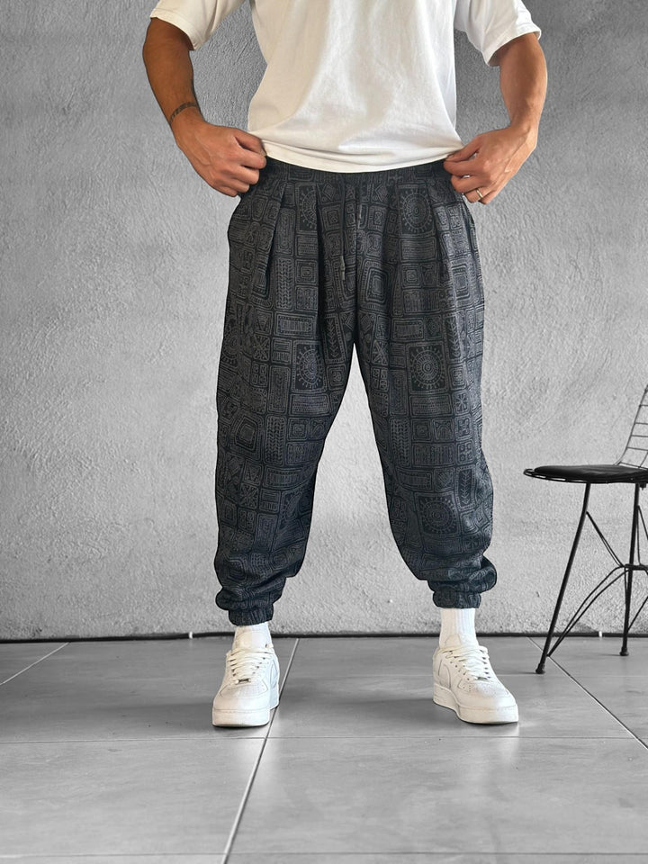 Lahit Desenli Lazer Kesim Pileli Yarım Şalvar