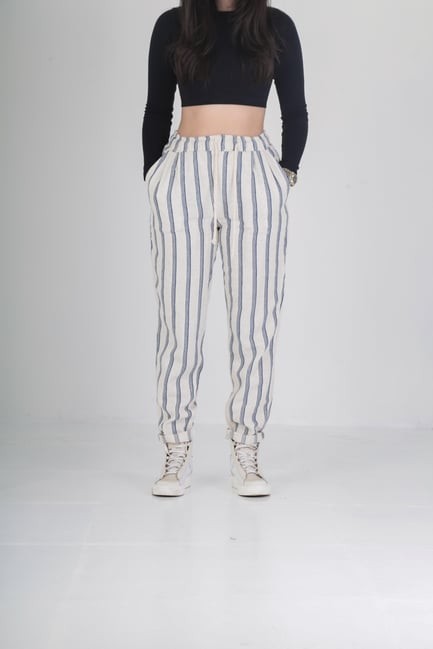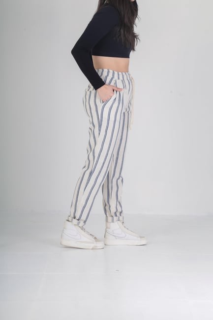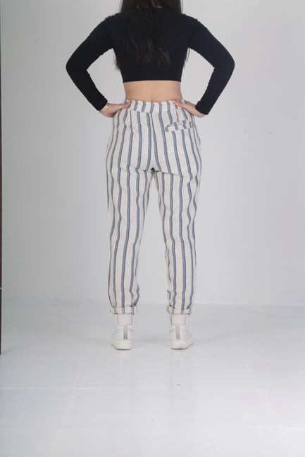 Mavi Dik Çizgi Keten Pantolon COC1541