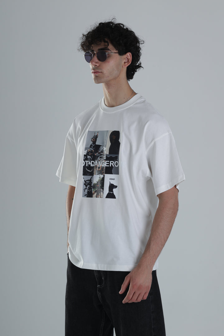 Not Dangerous Beyaz Oversize Tasarım T-Shirt