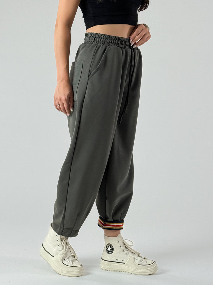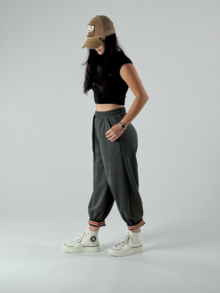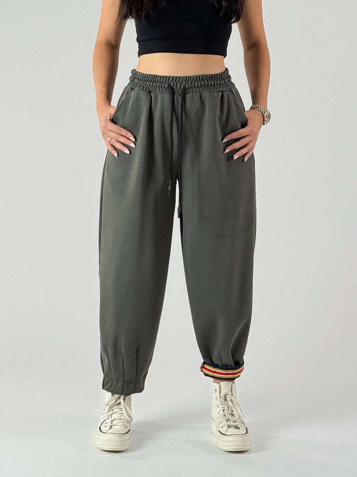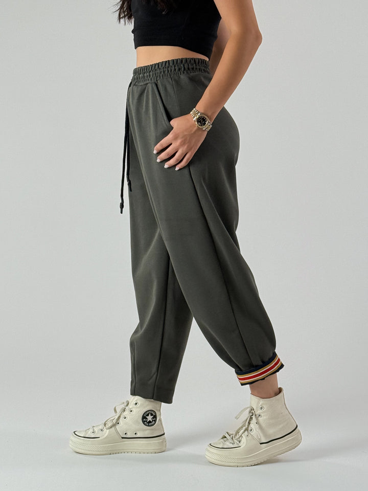 Paça Detaylı Haki Kadın Pantolon COC1006