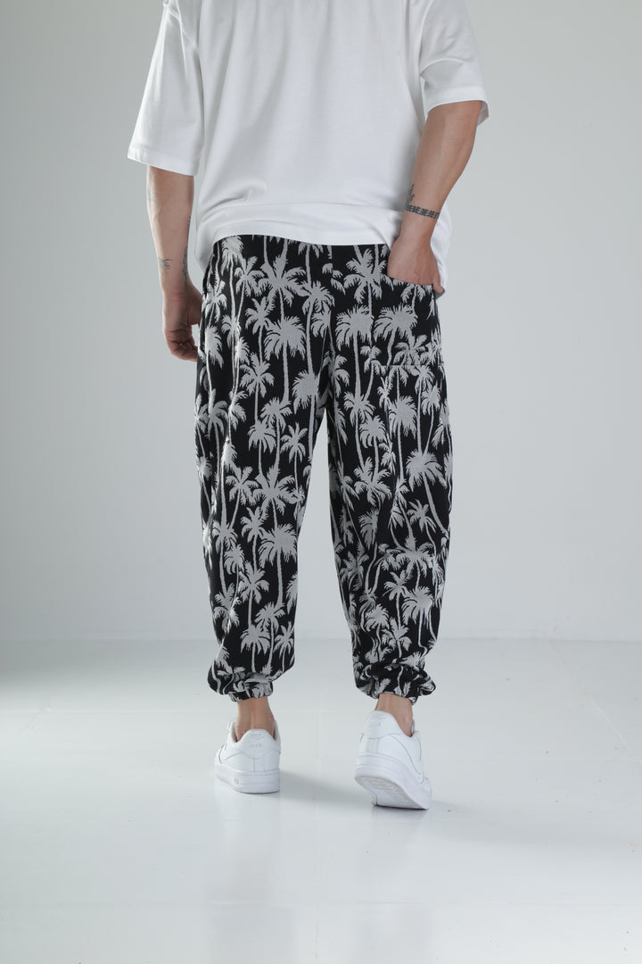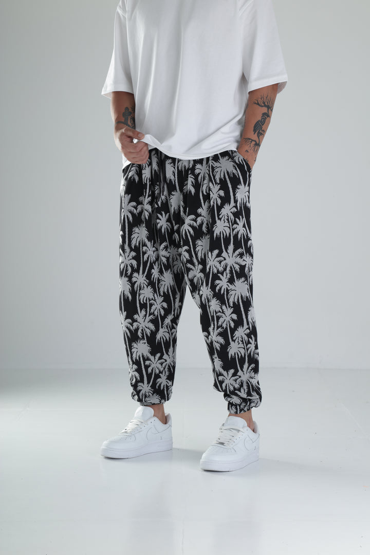 Palmiye Desenli Siyah Pileli Jogger COC1494