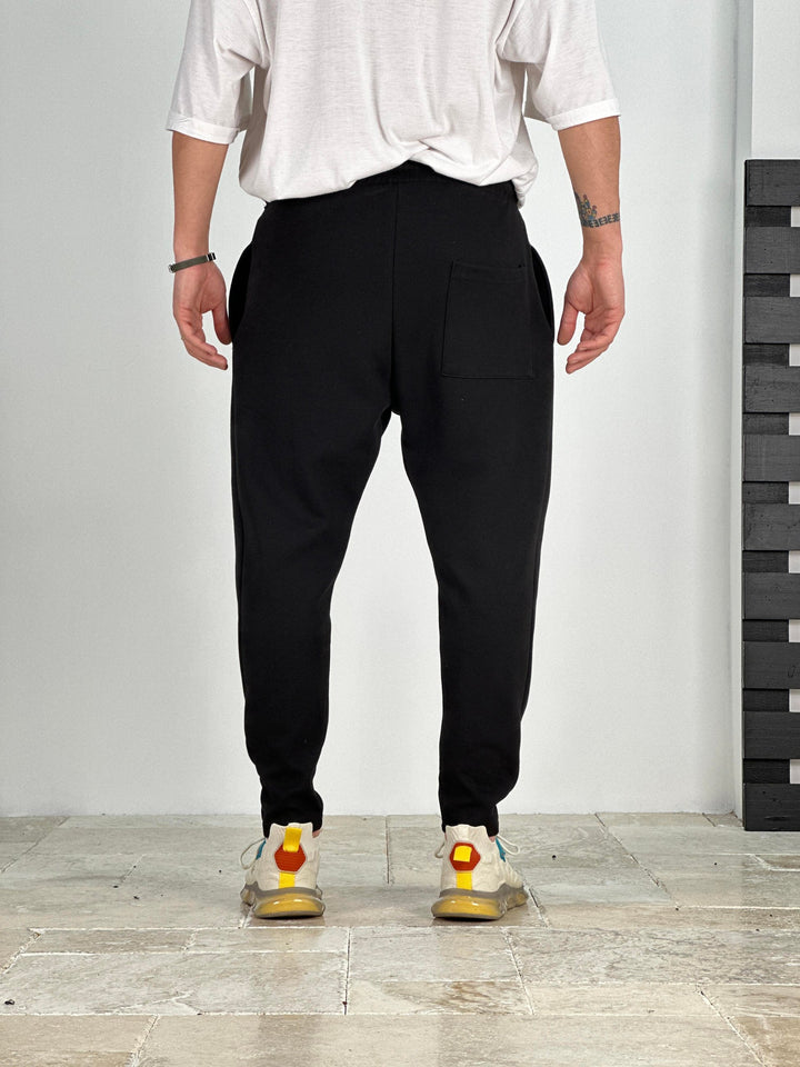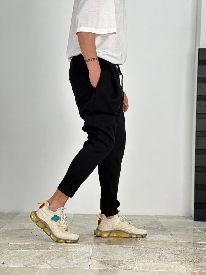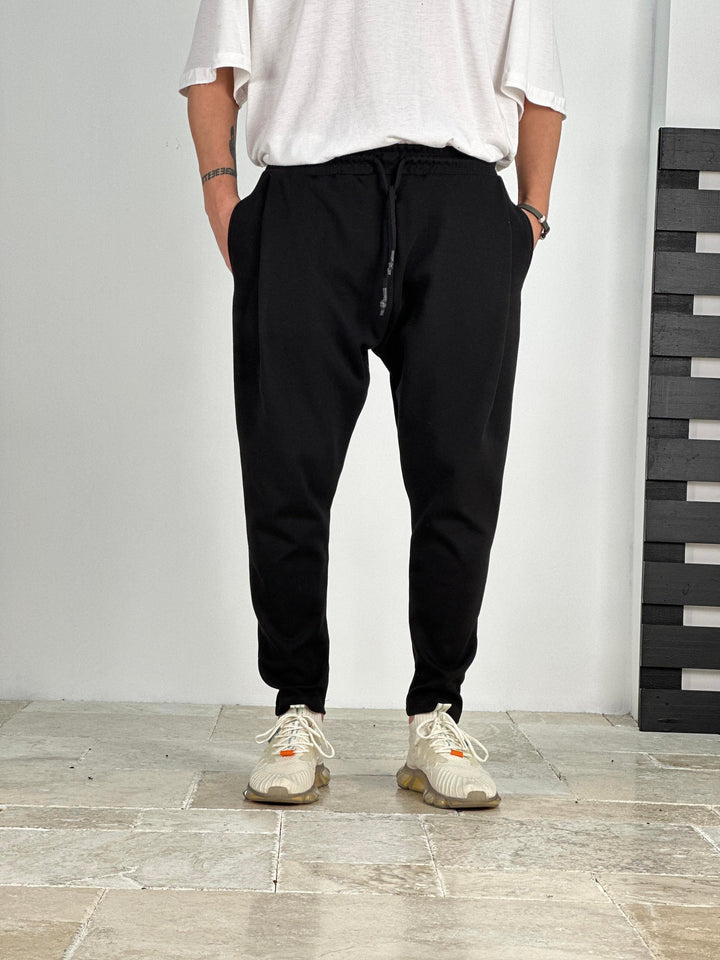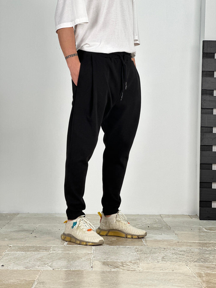 Pileli Siyah Havuç Kesim Pantolon - kumaş 3 iplik COC2092
