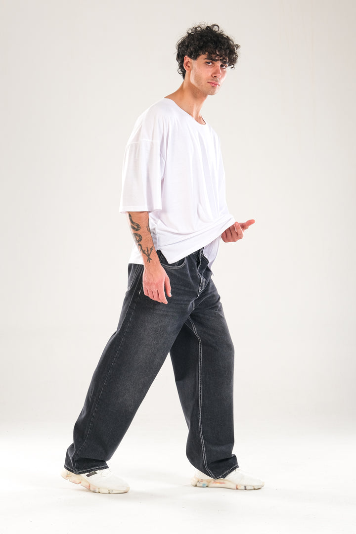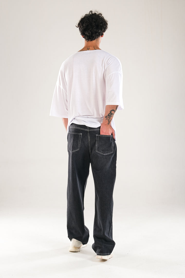 Fit & Beden Bilgisi: Baggy kesimiyle salaş ve modern bir tarz sunar. Siyah kot kumaşın şıklığını rahat kalıpla buluşturarak günlük kullanımda hem özgün hem de konforlu bir görünüm sağlar.