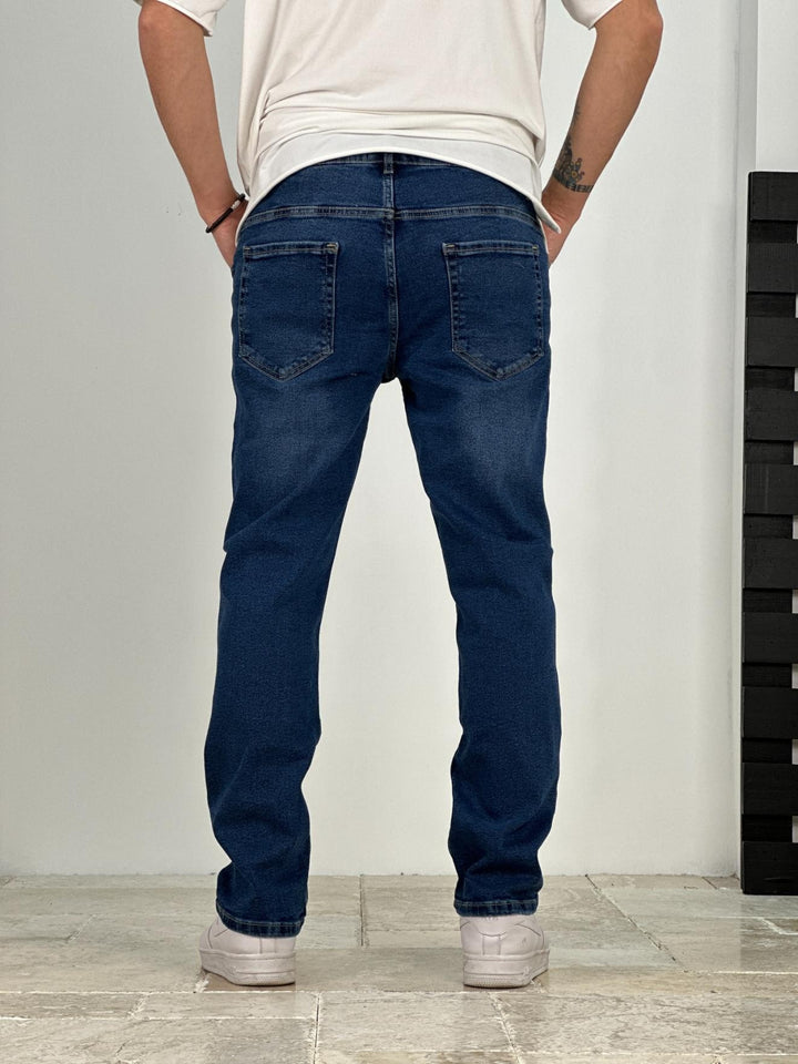 Premium Kalite Regular Kalıp Lacivert Likralı Kot Pantolon