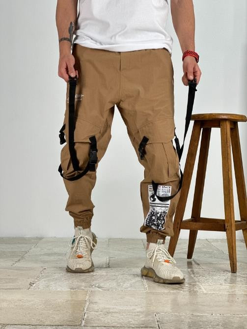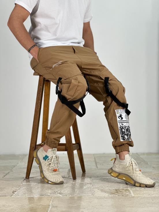 Premium Kalite Yazlık Bej Paraşüt Kumaş Jogger