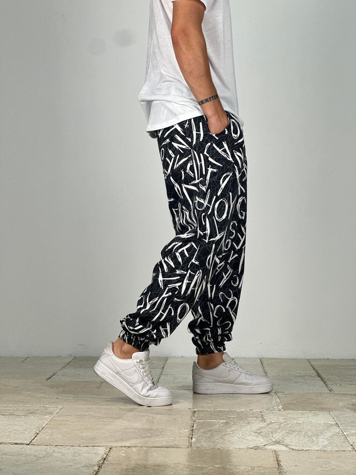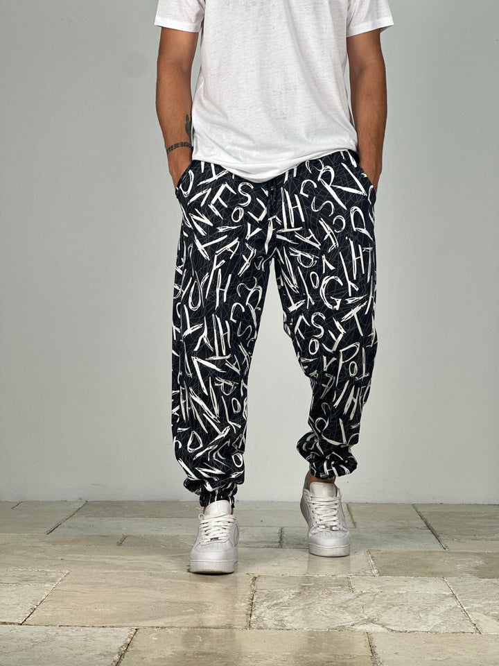 Siyah Beyaz Grafiti Desenli Jogger COC1974