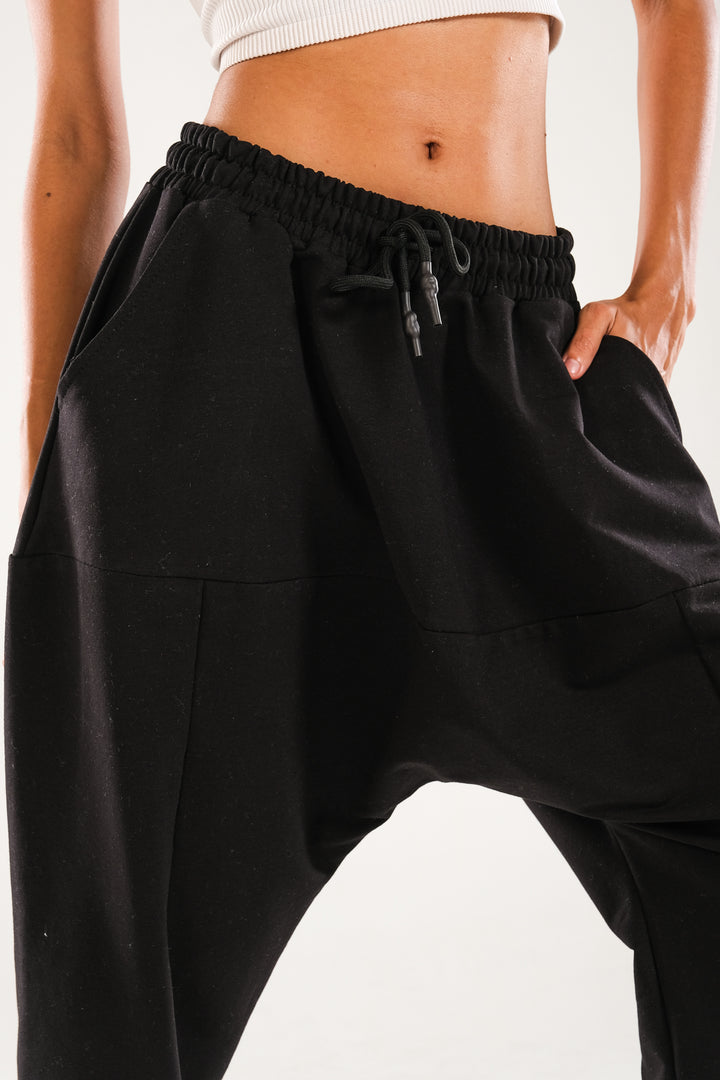 Fit & Beden Bilgisi: Harem jogger kesimiyle özgün bir stil sunar. Siyah rengi ve rahat kalıbıyla günlük kullanımda şıklık ve konfor sağlar.