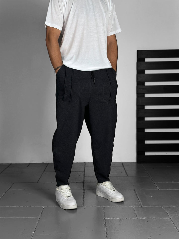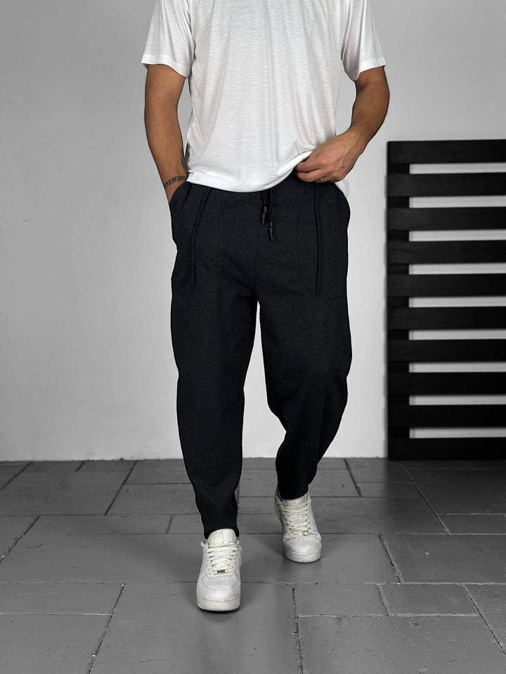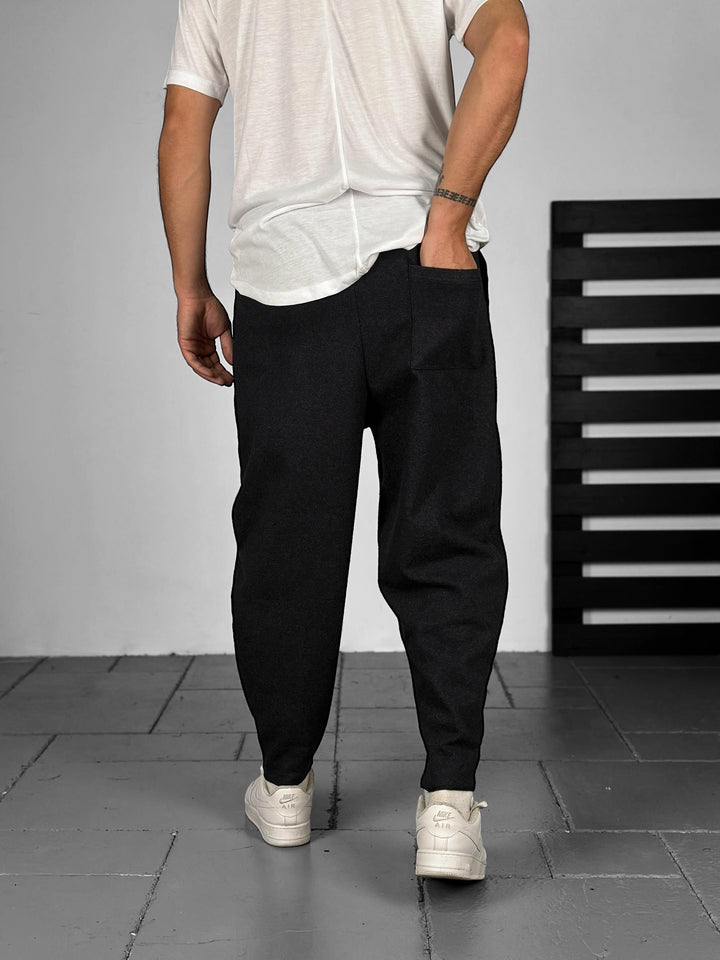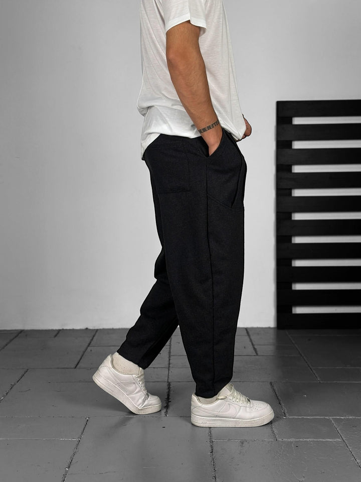Siyah Kaşe Kumaş Baget Pantolon