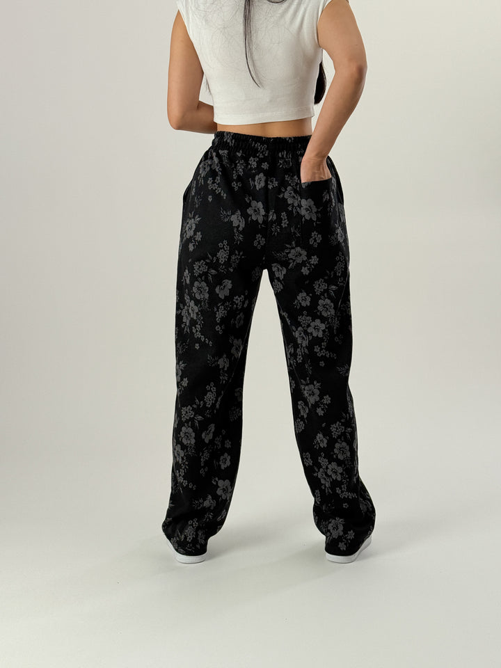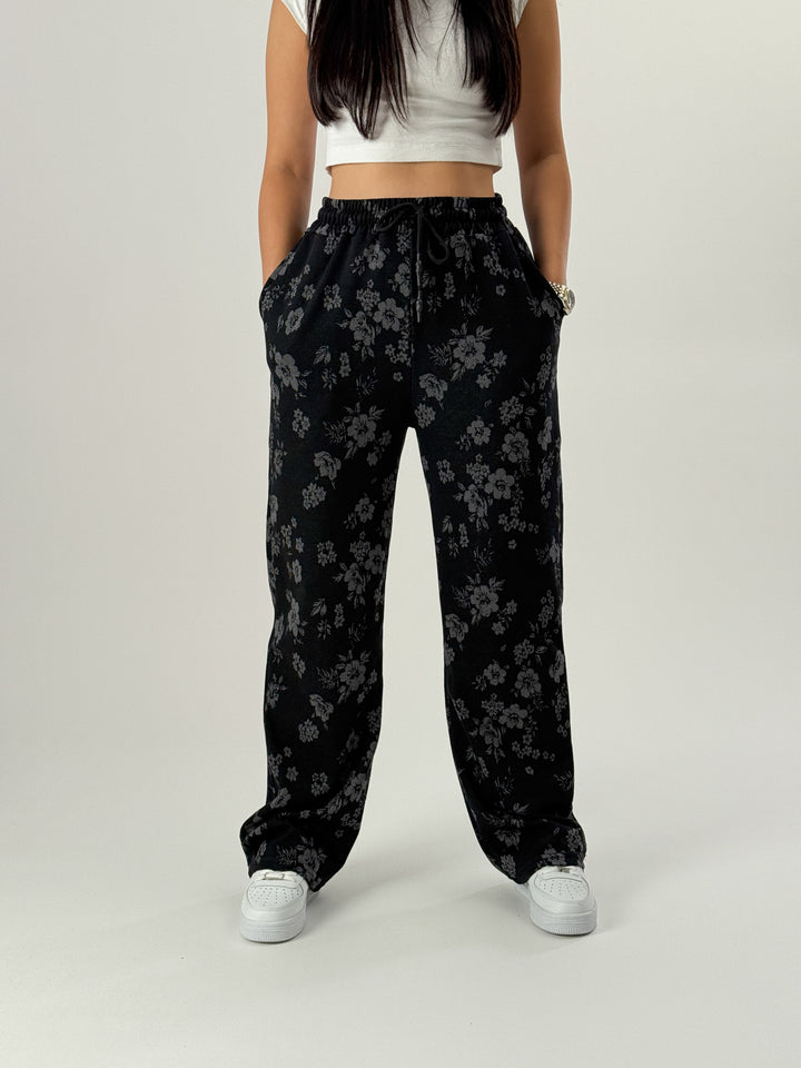 Tasarım Çiçek Baskı Kadın Baggy Pantolon COC1050